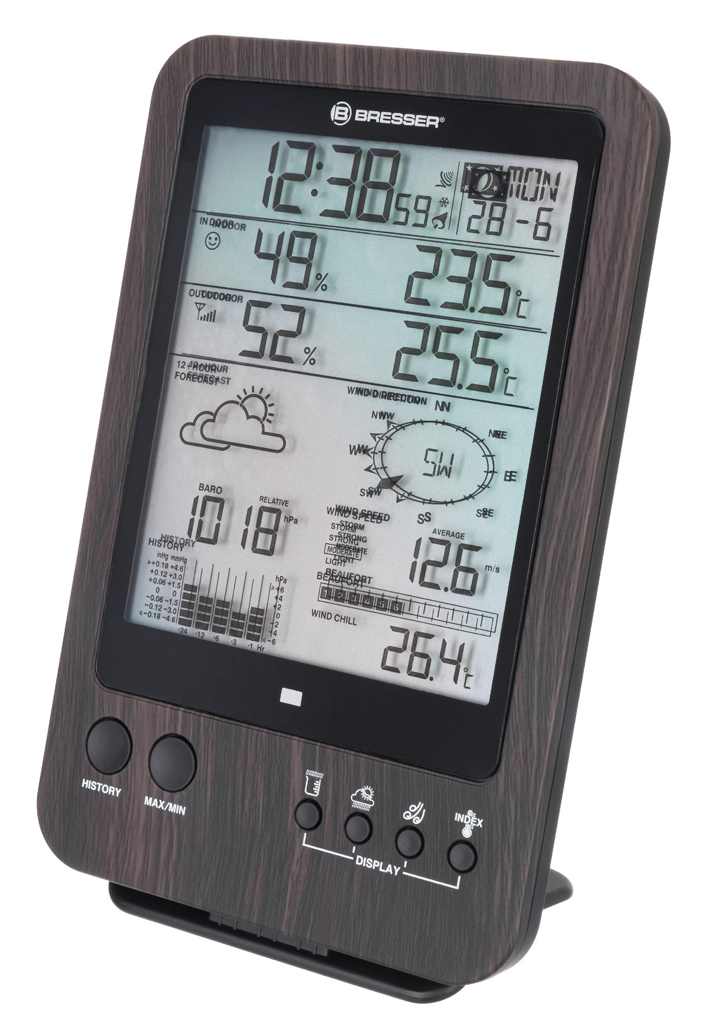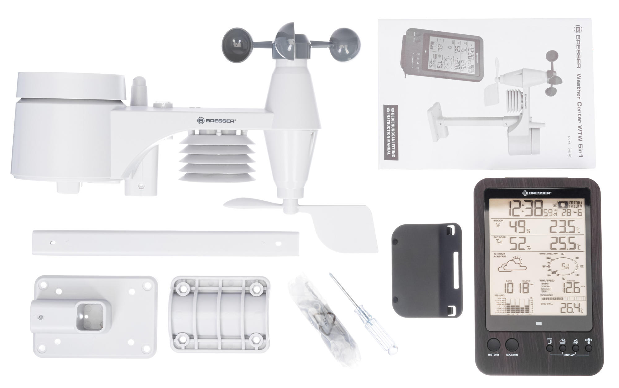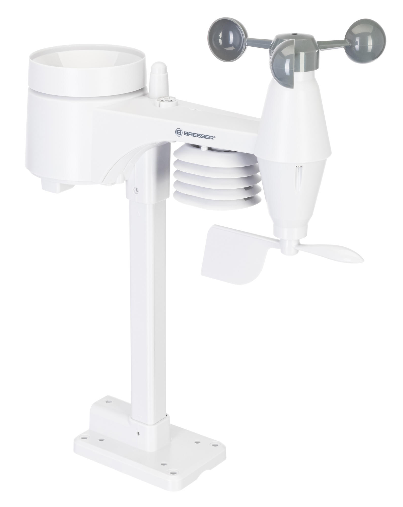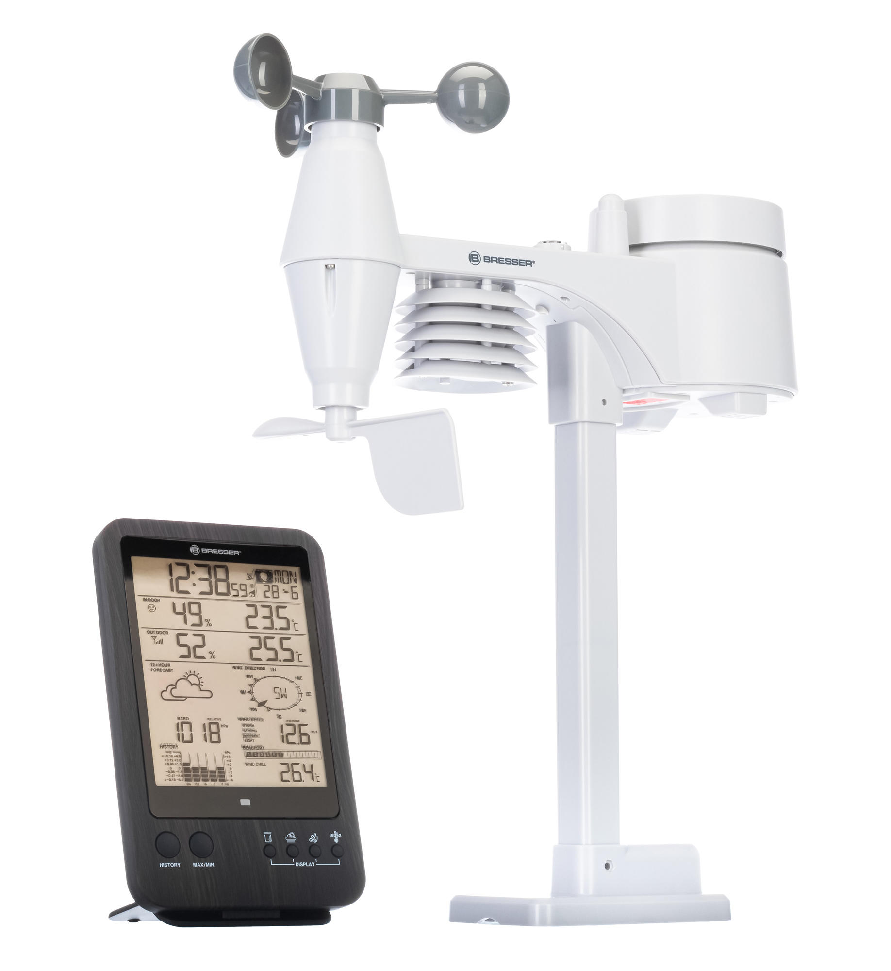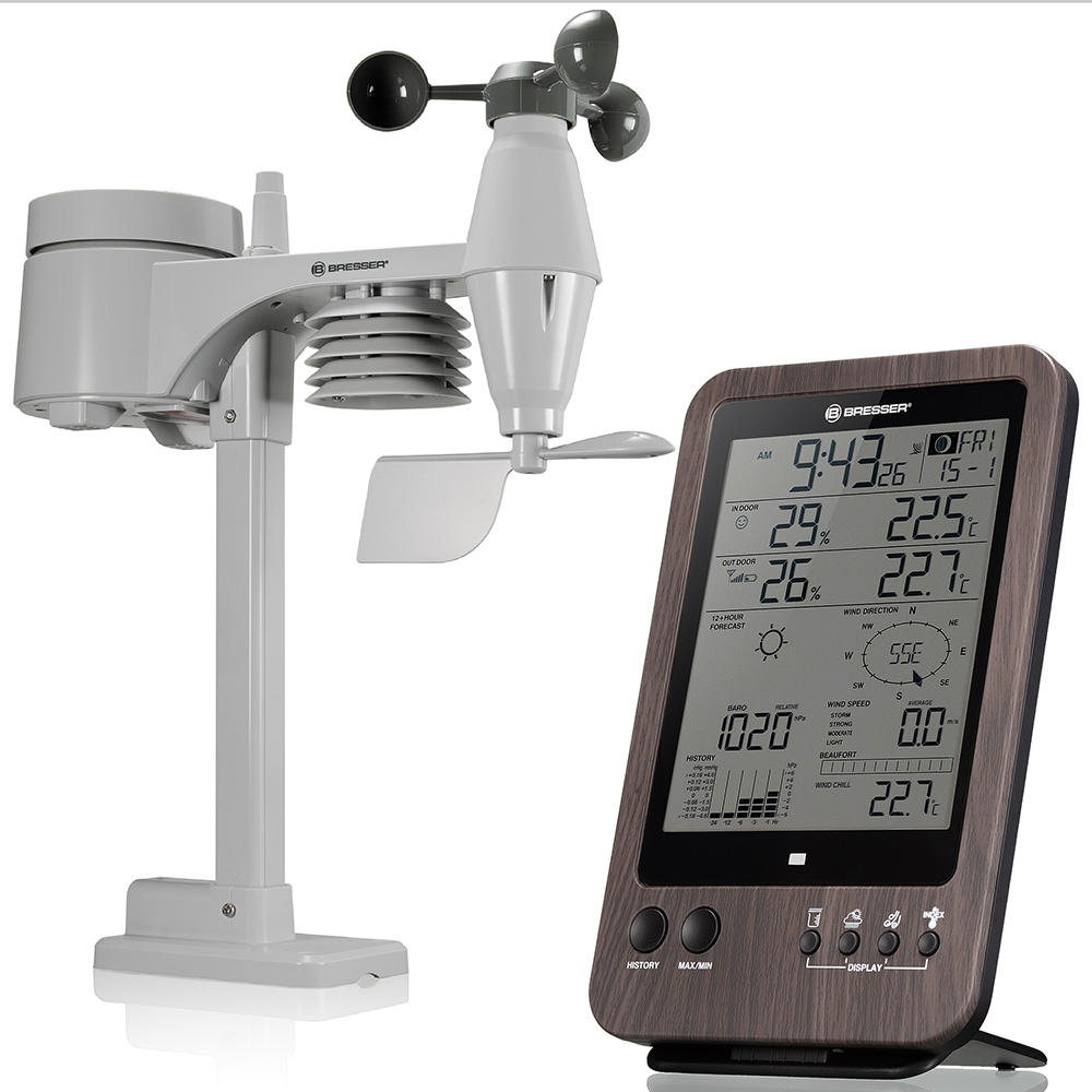 Многофункциональная метеостанция Bresser «5 в 1» WTW – это возможность следить за малейшими изменениями погоды, не выходя из дома. Также она позволяет наблюдать в реальном времени за микроклиматом дома и вовремя реагировать на любые негативные изменения. Прибор комплектуется беспроводным мультидатчиком, который производит множество измерений на улице. За измерения внутри помещения отвечает сама метеостанция.