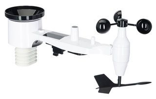 Для уличных замеров используется выносной радиодатчик «5 в 1». Он способен работать на расстоянии до 100 метров от станции (в прямой видимости, оптимальная дистанция – до 50 метров). Датчик работает от батареек и оснащен солнечной панелью. Солнечная батарея используется только для питания, не заряжает элементы питания (аккумуляторы). Станция поддерживает подключение до 8 датчиков одновременно. База станции может как питаться от батареек, так и работать от сети (элементы питания в комплект не входят).