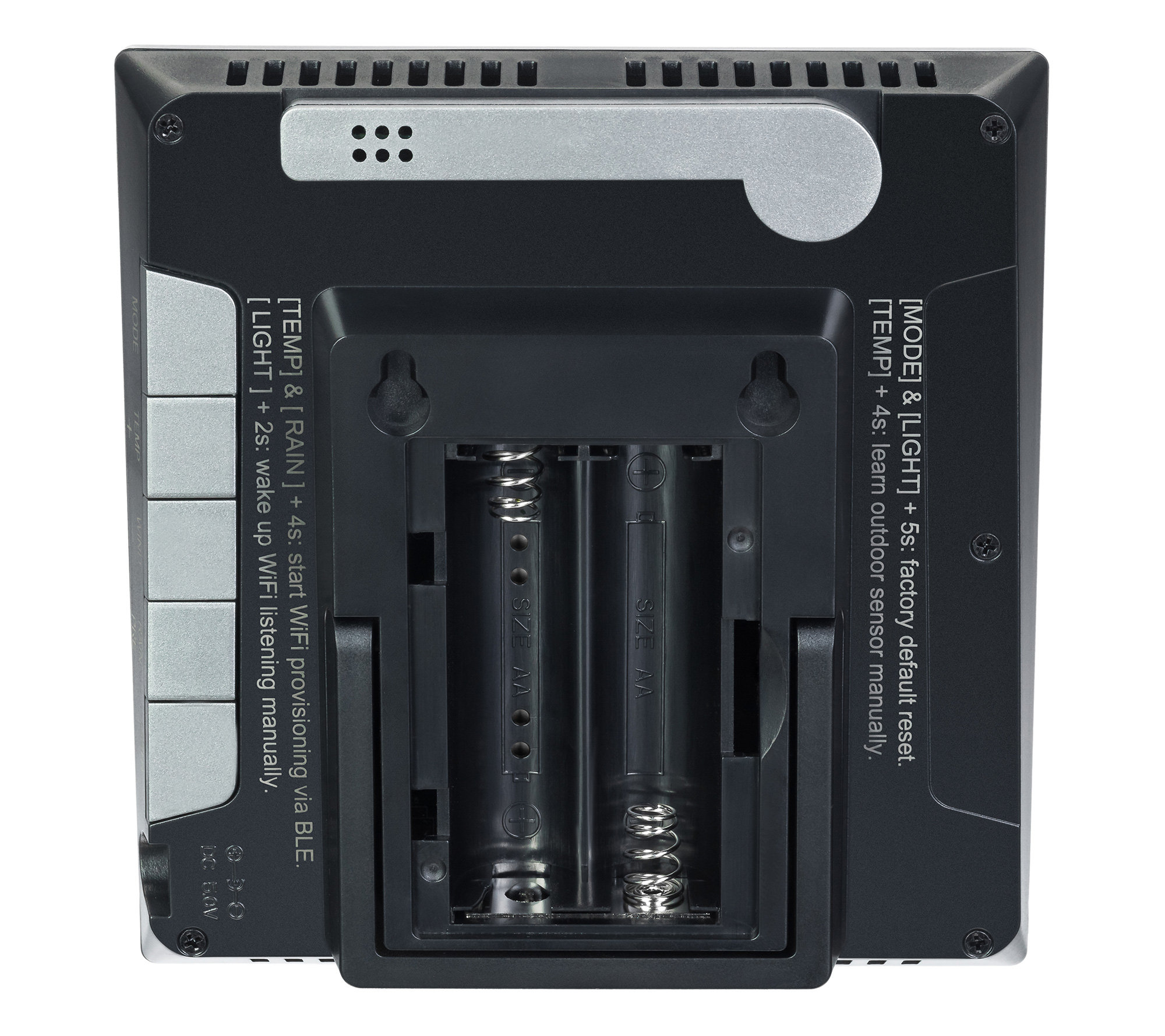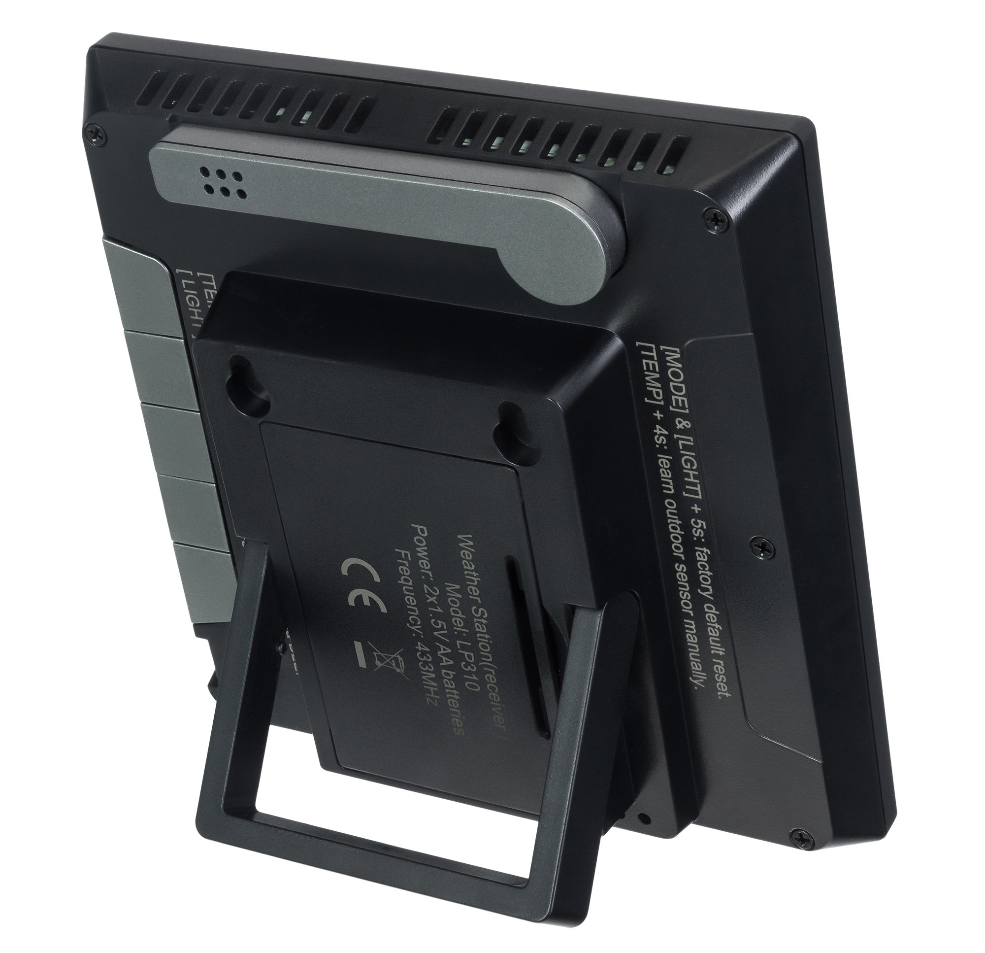 Показатели выводятся на жидкокристаллический экран крупными, удобными для считывания символами, можно выбрать привычные единицы измерения. При питании от сети подсветка станции работает постоянно, при питании от батареек – включается на время.