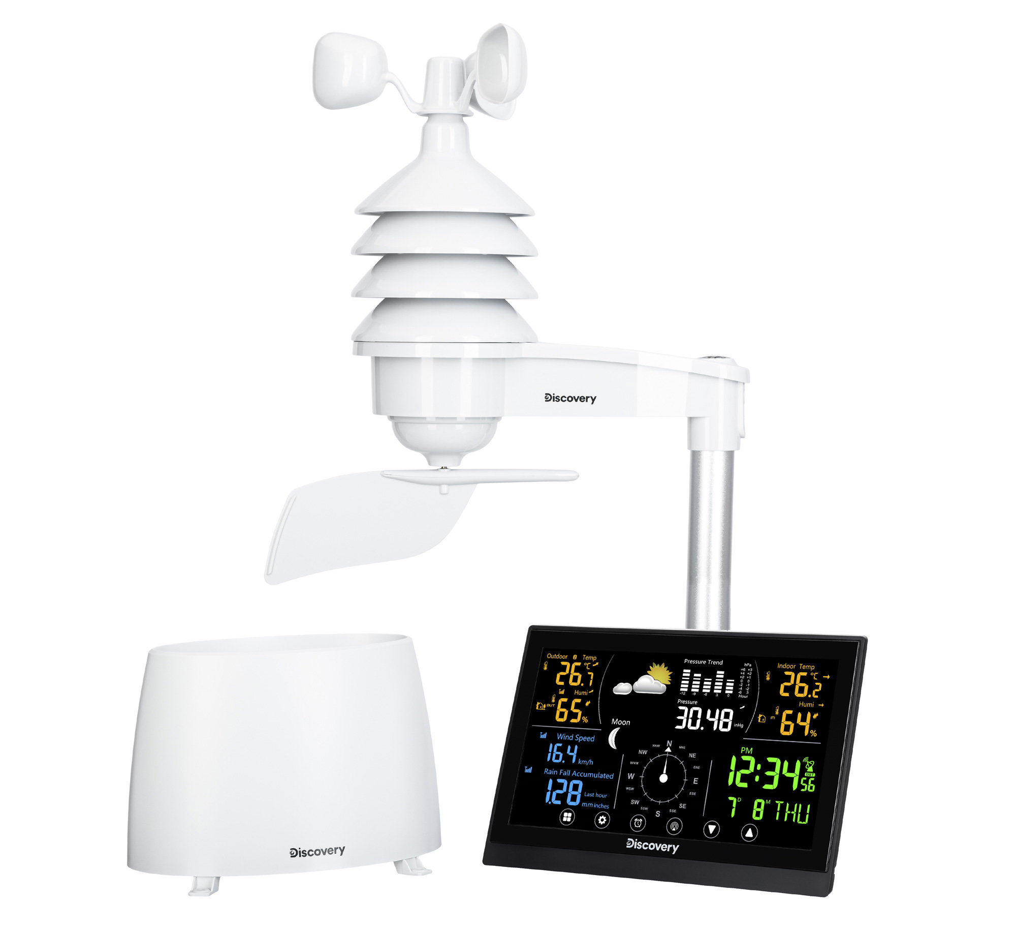 Возможности Levenhuk Discovery Report WA60 понравятся тем, кому нужен не просто домашний погодный гаджет, а профессиональный метеоцентр. Прибор комплектуется сразу двумя выносными датчиками, проводит множество измерений в помещении и на улице, составляет прогноз погоды и график изменений атмосферного давления, показывает время, дату и день недели.