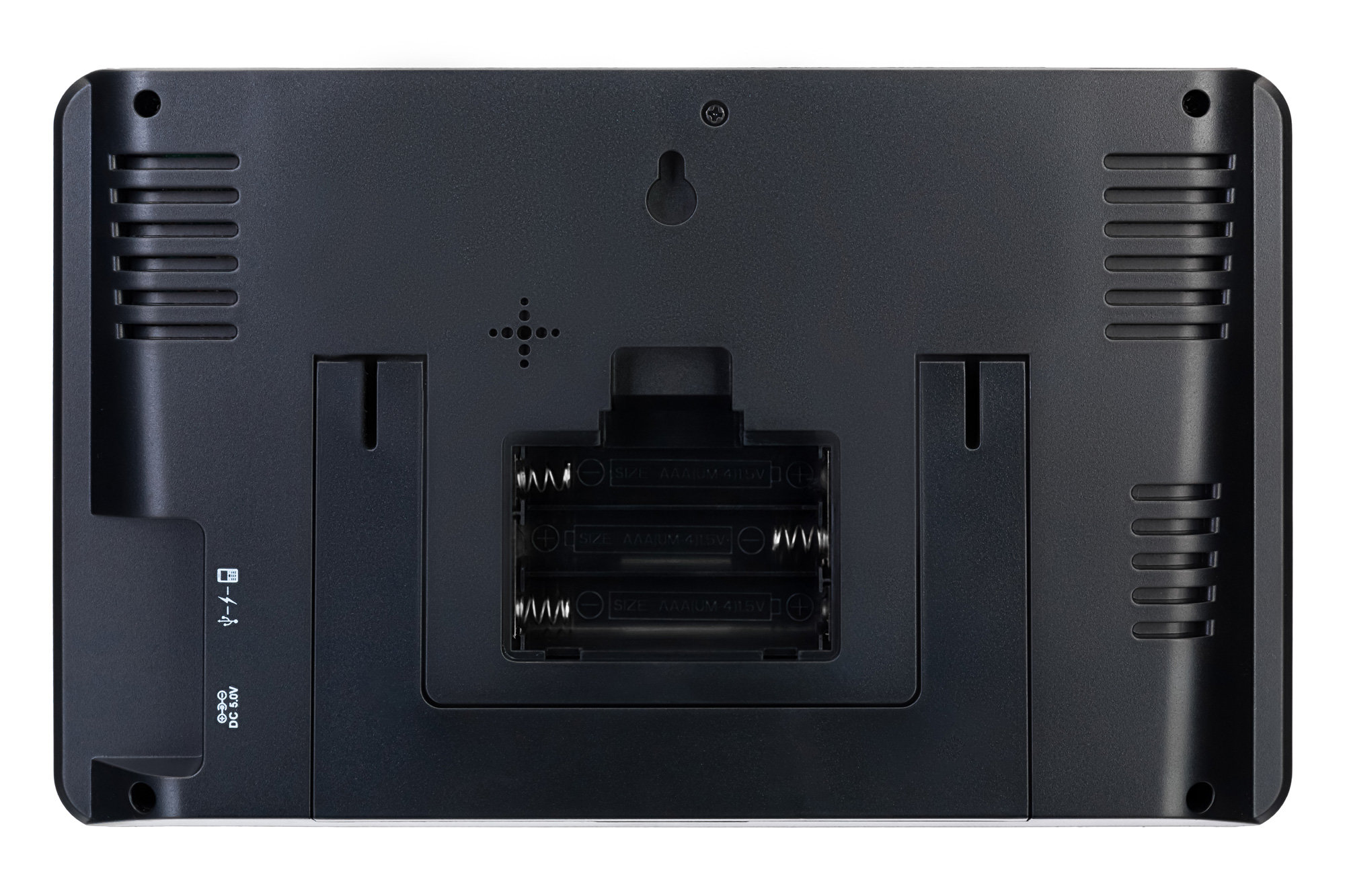 Модель работает от батареек или от сети. При подключении к сети доступна постоянная подсветка экрана метеостанции.
