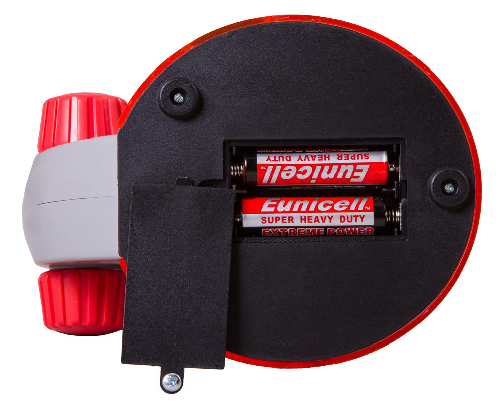 Благодаря пластиковому корпусу микроскоп Levenhuk LabZZ M101 имеет небольшой вес, но при этом очень надежен. Отсутствие острых углов и частей в конструкции делают микроскоп безопасным для совсем юных пользователей. Для питания подсветки используются батарейки, а не сетевое устройство. Это также намного безопаснее и удобнее, когда оптическим прибором пользуются дети. Окулярная насадка наклонена под углом в 45°, поэтому при работе с микроскопом снижается нагрузка на мышцы и зрение.