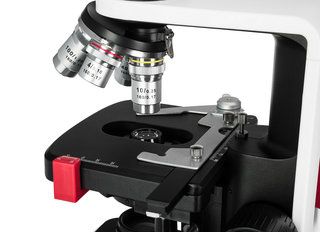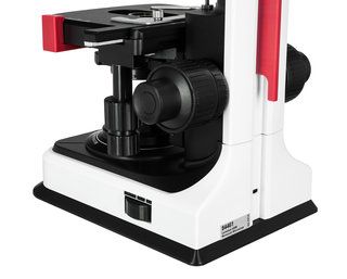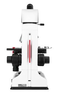 Для удобного позиционирования образца в конструкции микроскопа Levenhuk 450M предусмотрен предметный столик 110х120 мм. Под столиком расположен конденсор Аббе с ирисовой диафрагмой, регулирующей поток света, и специальными держателями для установки светофильтров. Фокусировка микроскопа осуществляется с помощью рукояток точной и грубой настройки коаксиальной системы.
