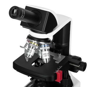 В микроскопе установлена оптика, обеспечивающая увеличение от 40 до 1000 крат и формирующая четкое, яркое и правдивое изображение. В револьверном устройстве размещено 4 ахроматических объектива с увеличением 4х, 10х, 40х и 100х; последний можно использовать для наблюдений иммерсионным методом (флакон с маслом входит в комплект поставки).