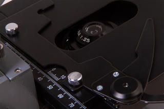 Диапазон увеличений микроскопа составляет от 40 до 1600 крат. Ахроматические объективы передают четкое и высокодетализированное изображение без искажений. На максимальном увеличении – при использовании 100-кратного объектива – можно применять метод масляной иммерсии (флакон со специальным маслом уже включен в комплект поставки). Два широкоугольных окуляра с указателем центра поля помогают изучать протяженные образцы со сложной структурой.