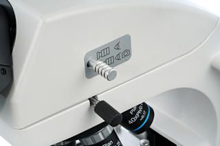Предметный столик снабжен препаратоводителем, который делает работу с образцами более удобной. Рядом находятся ручки грубой и точной фокусировки. Под столиком расположены фазовый конденсор, держатель фильтра и яркая светодиодная подсветка, работающая от сети переменного тока. Яркость подсветки можно регулировать.