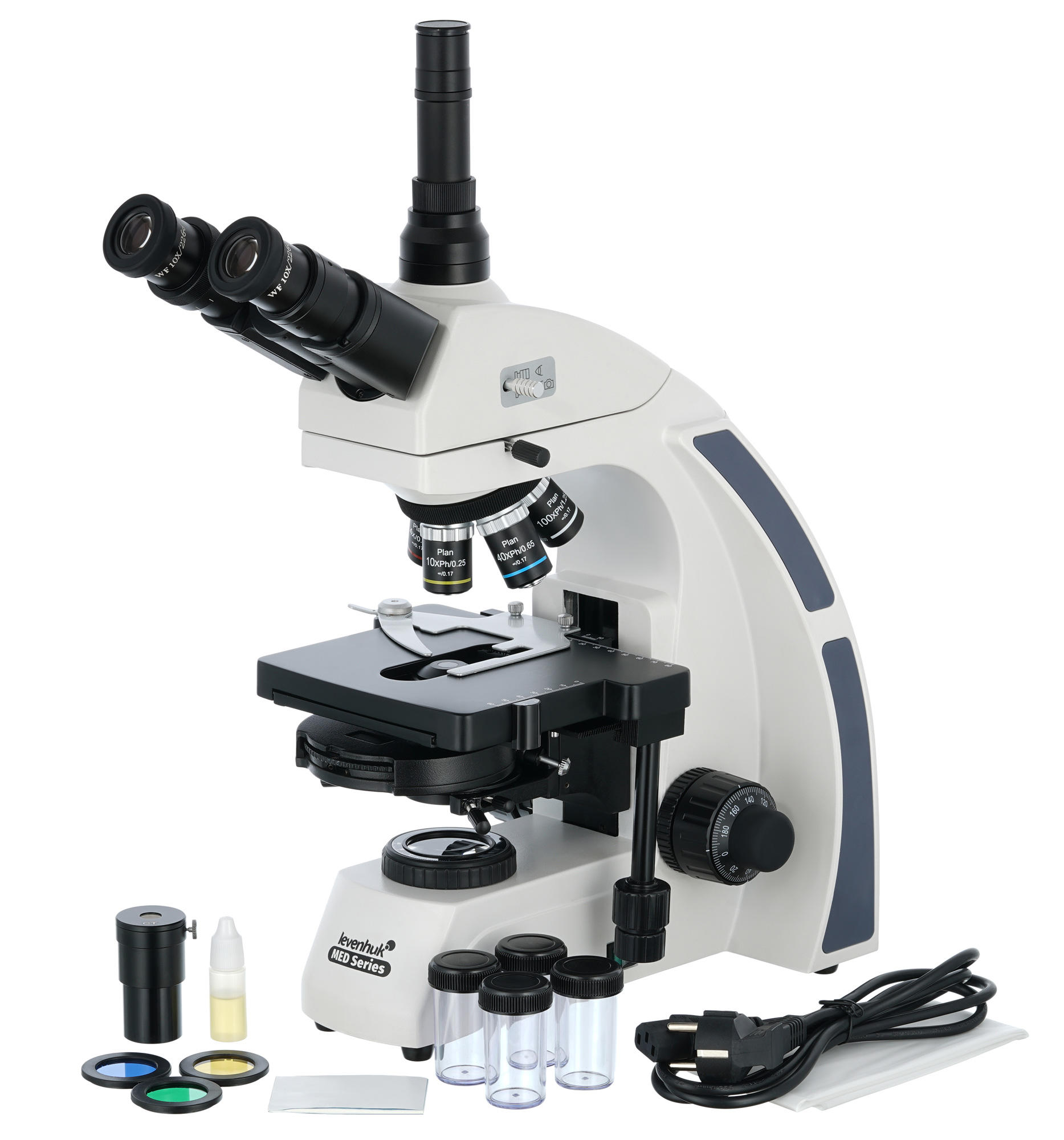 Тринокулярный микроскоп Levenhuk MED 45T создан для профессиональных микроисследований в лаборатории. Его возможности оценят специалисты, работающие в разных областях науки: биохимики, микробиологи, медики, ветеринары и другие. Микроскоп позволяет вести наблюдения «сухим» или иммерсионным методом, с использованием темного или светлого поля, фазово-контрастной микроскопии или освещения по методу Келера. Планахроматическая оптика дает увеличение от 40 до 1000 крат, минимизирует искажения, создает плоское поле зрения – качество картинки позволит изучать совсем малые структуры.
