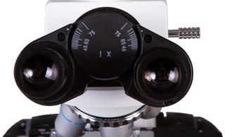В микроскопе используется планахроматическая оптика, которая значительно выравнивает поле зрения, убирает оптические искажения, улучшает контрастность и цветопередачу. Мельчайшие детали структур видны четко и ясно, наблюдения можно вести на увеличении от 40 до 1000 крат. В комплекте идут следующие оптические аксессуары: широкопольные окуляры с 10-кратным увеличением и диоптрийной коррекцией и четыре объектива разной кратности. 40-кратный и 100-кратный объективы снабжены пружинящими оправами. Для наблюдений иммерсионным методом используется 100-кратный объектив. Все аксессуары имеют защитное антигрибковое покрытие.
