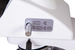 Тринокулярная насадка разделена на бинокулярную визуальную часть и отдельную вертикальную трубку для установки цифровой камеры. Наблюдения ведутся сразу обоими глазами, а благодаря широкопольным окулярам работать можно и с протяженными образцами. Планахроматические объективы создают плоское поле, минимизируют оптические искажения и улучшают цветопередачу. Наблюдения можно вести на увеличении от 40 до 1000 крат. Резкость настраивается ручками грубой и точной фокусировки.