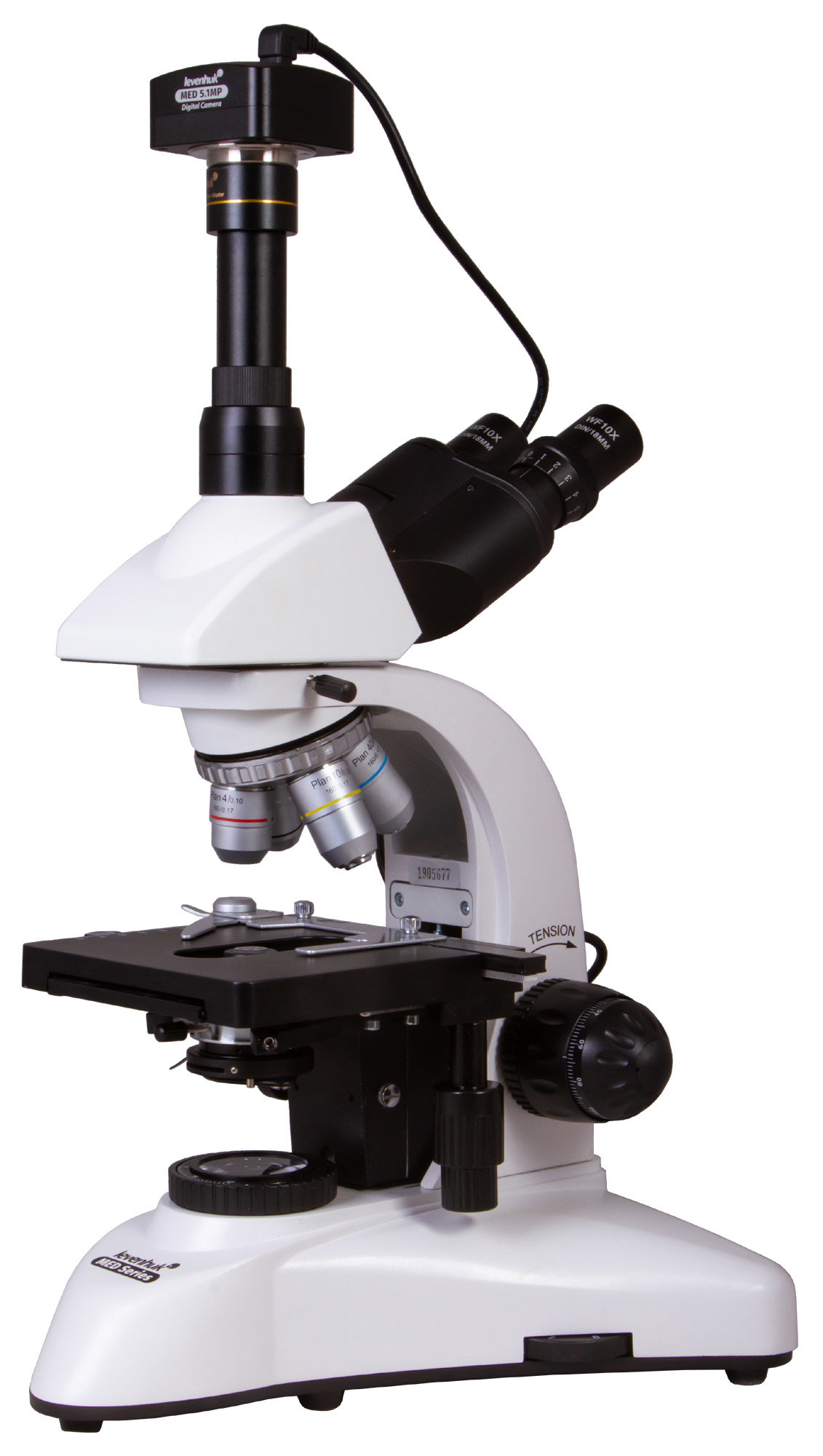 Насадку можно поворачивать на 360°. Визуальная часть наклонена под 30-градусным углом, а окулярная трубка для установки цифровой камеры расположена вертикально. Есть делитель светового потока. Камера снабжена чувствительным сенсором 5,1 Мпикс, может делать одиночные фотографии и снимать видеоролики. Разрешения снимков хватает для профессиональных исследований и создания подробных цифровых архивов. Тринокулярный микроскоп с цифровой камерой – это отличная возможность облегчить длительную работу в лаборатории. Картинка с объектива микроскопа выводится на внешний экран, что избавляет от необходимости постоянно смотреть в объективы, напрягая зрение и мышцы плечевого пояса.