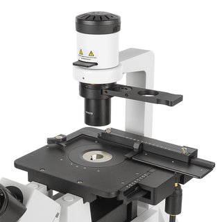 Для питания осветителя стабилизированным напряжением и регулировки его яркости с высокой точностью в комплект микроскопа входит контроллер с блоком питания. Контроллер позволяет выставлять яркость с точностью до 0,5% и регулировать ее в пределах 0-100%. Кроме того, устройство индицирует внутреннюю температуру, влажность и предупреждает о включенном потенциально опасном УФ-освещении.