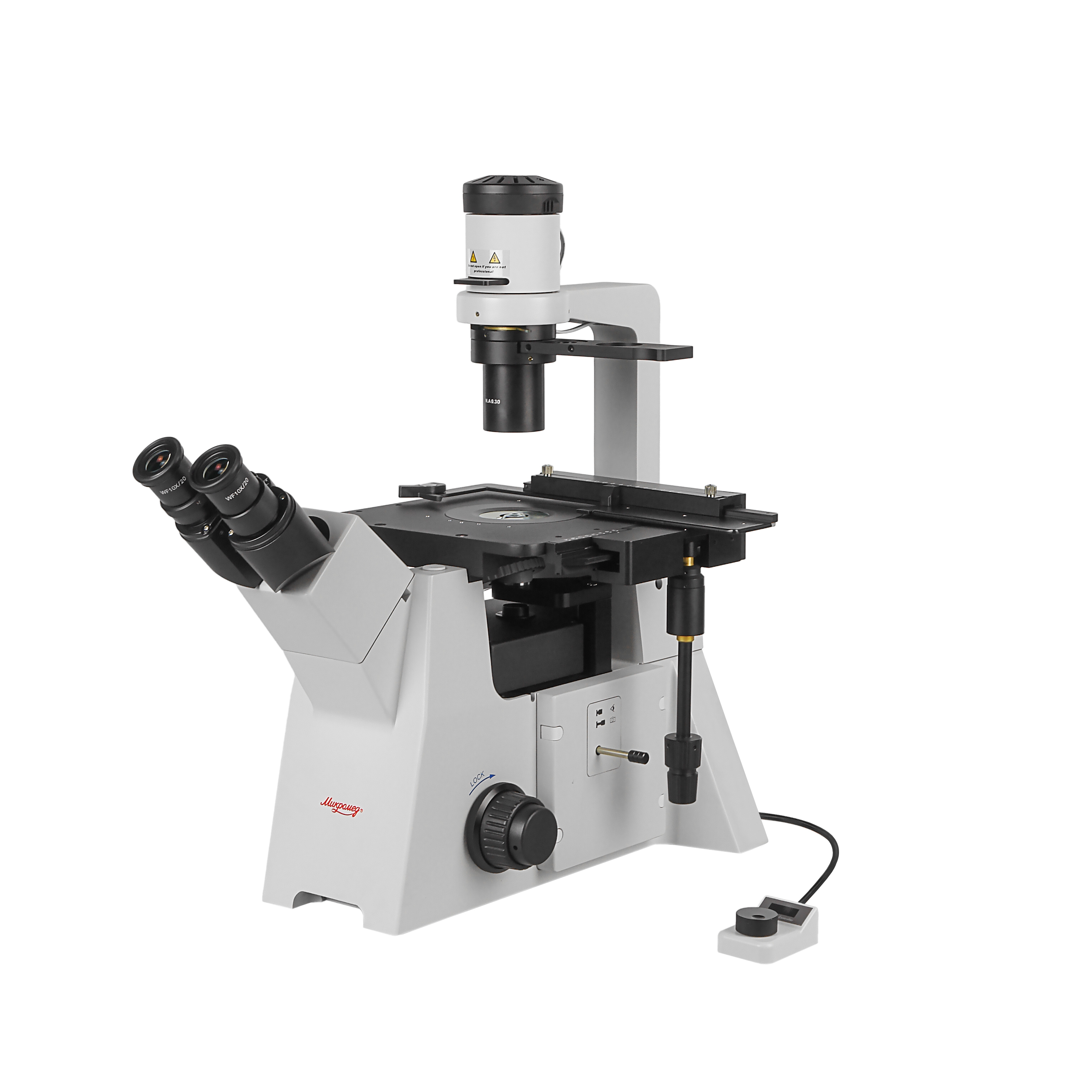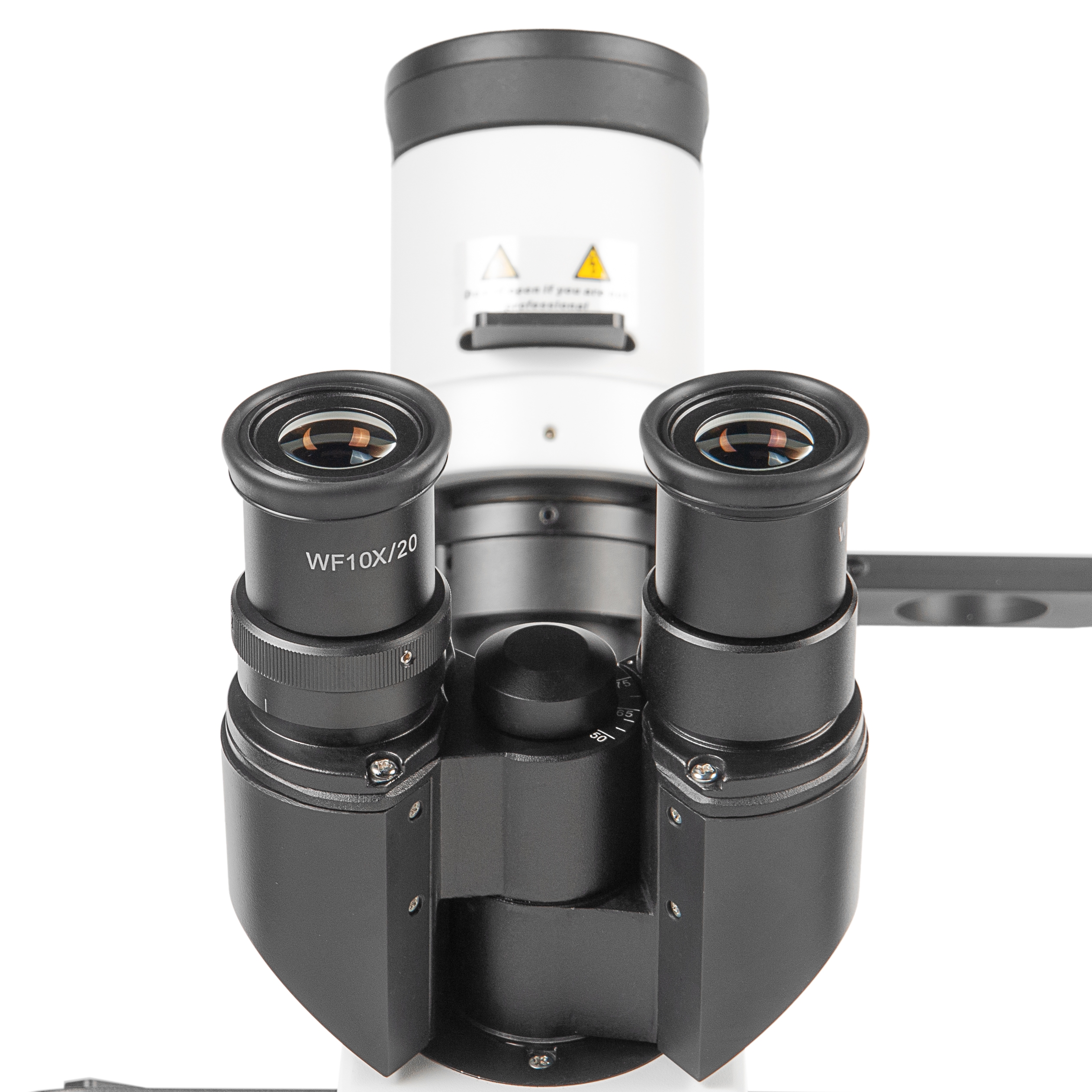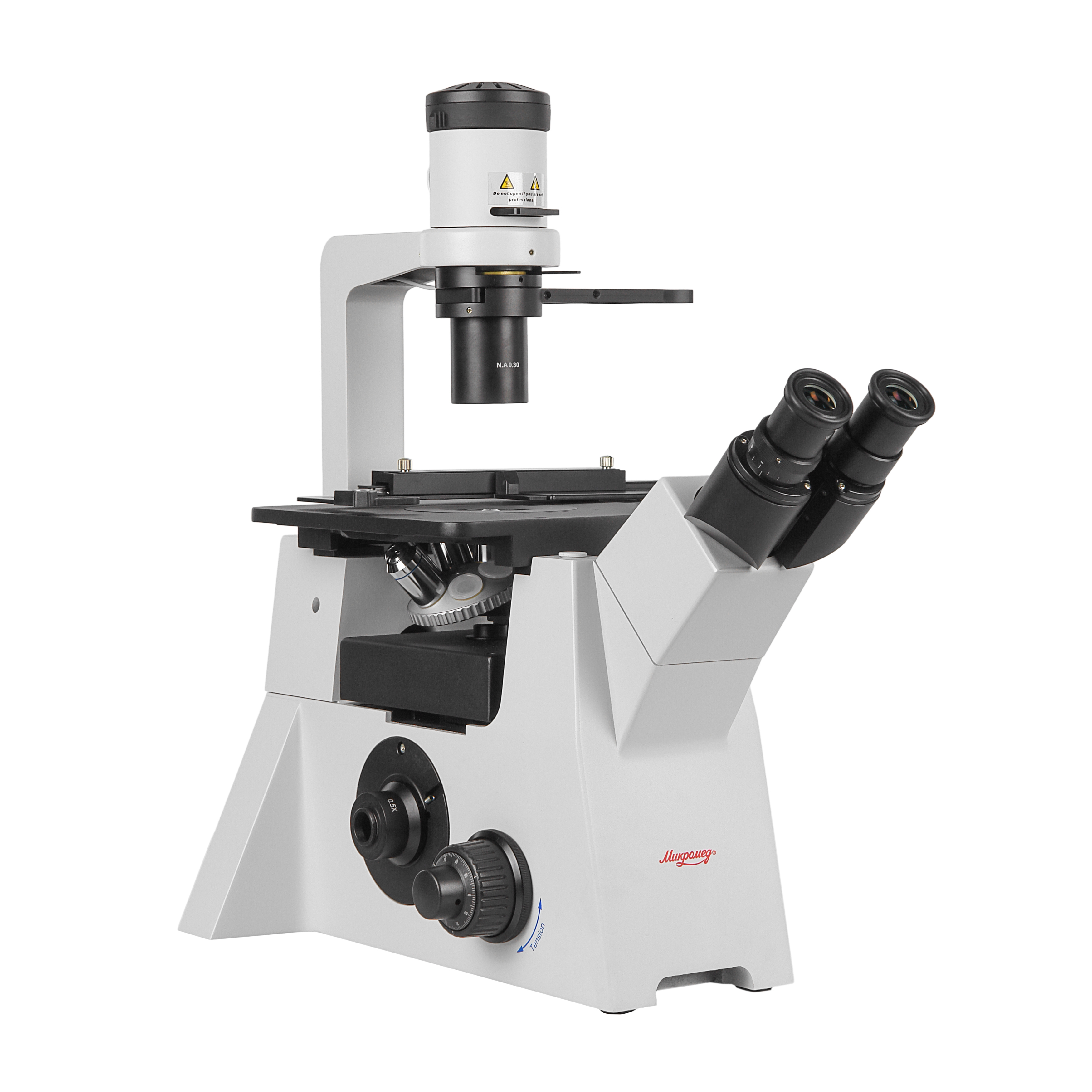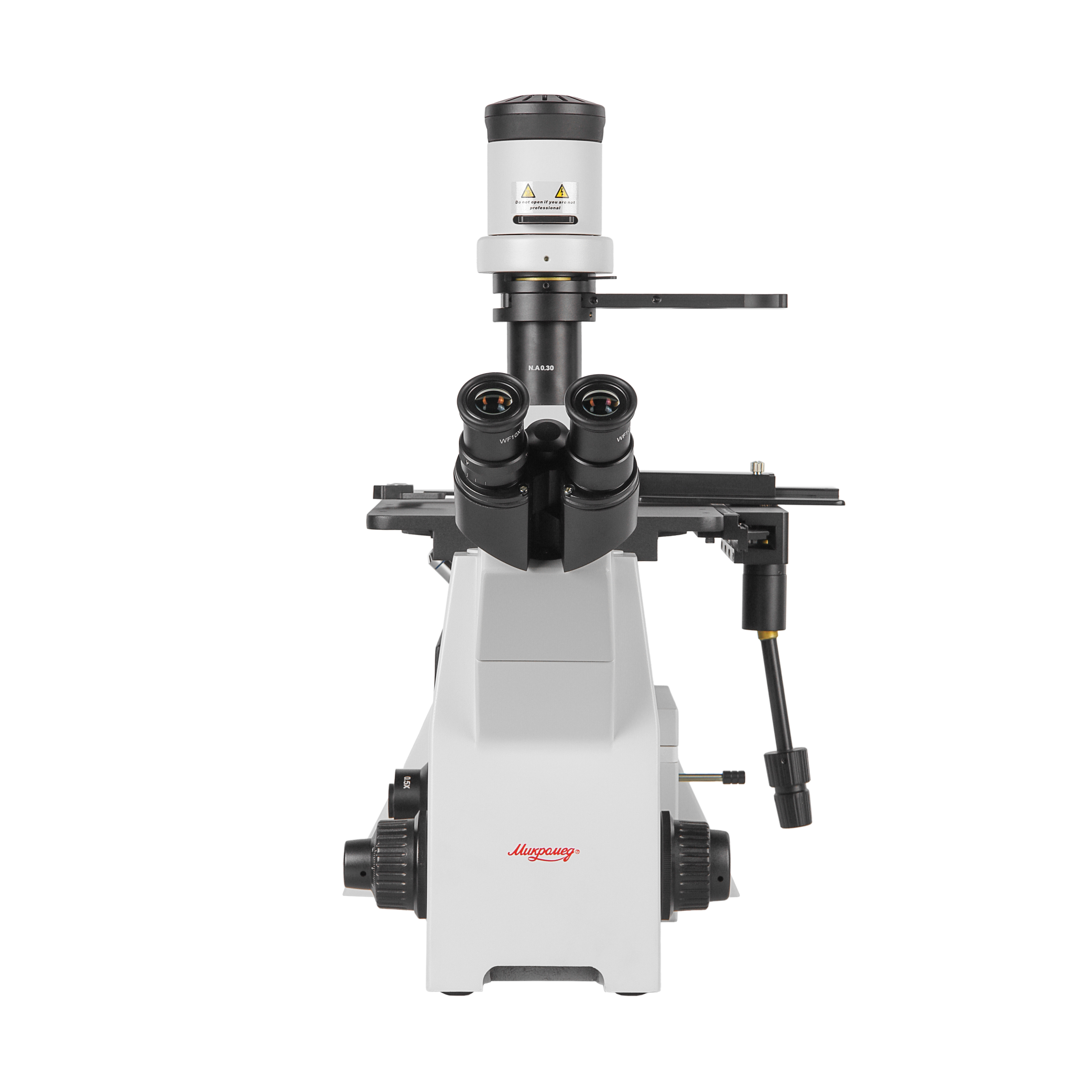 Микроскоп построен по оптической схеме «бесконечность» и включает визуальную насадку типа ICO Infinitive с окулярными тубусами, независимый оптический канал визуализации, объективы и конденсорный осветитель проходящего света, предназначенный как для работы методом светлого поля, так и методом фазового контраста.