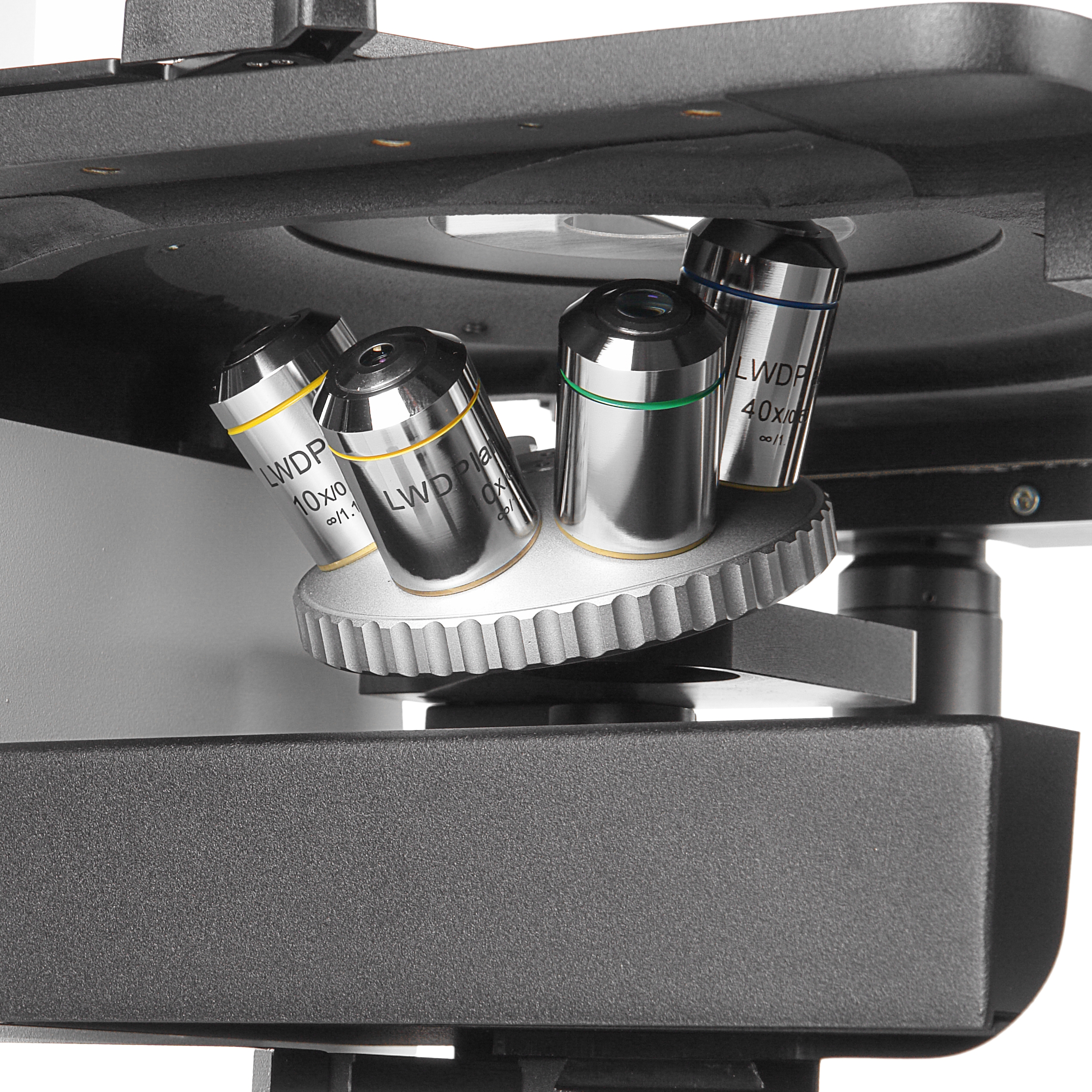 В базовый комплект микроскопа входят биологические объективы для работы в светлом поле LWD Plan 10x/0.25, LWD Plan 20x/0.40 и LWD Plan 40x/0.60. По дополнительному заказу для микроскопа доступны объективы LWD Plan 4х/0.10, и LWD Plan 60х/0.70.