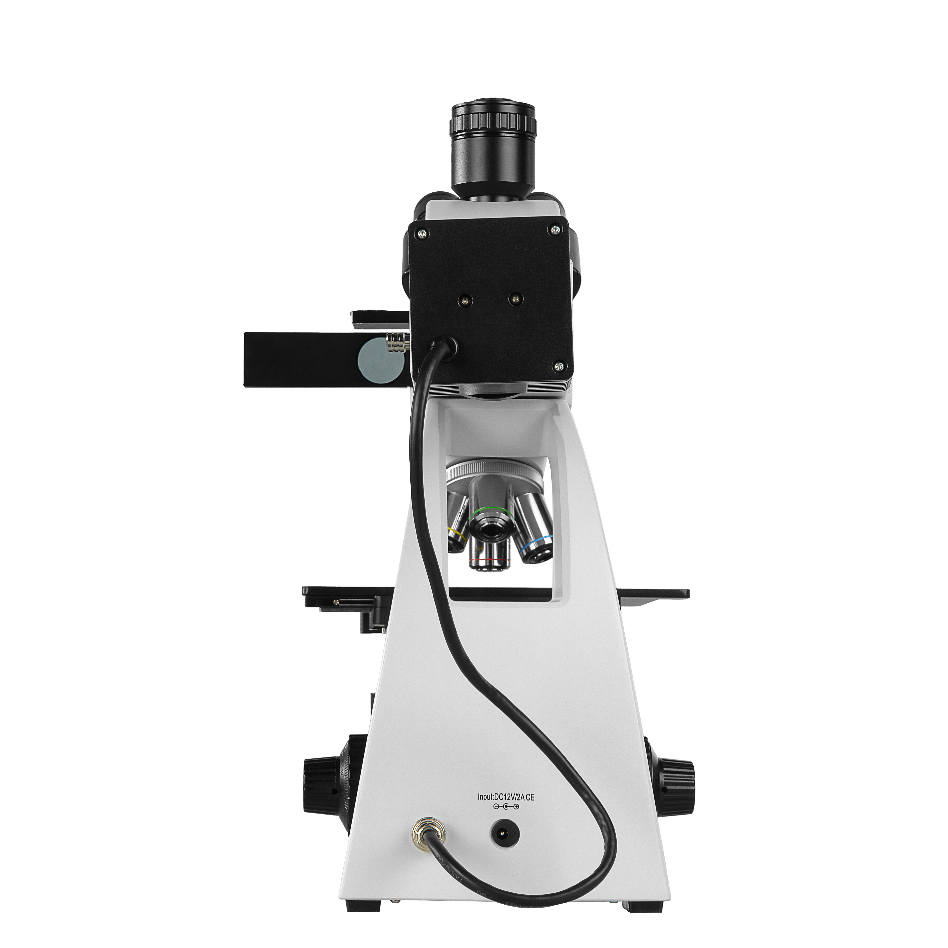 Осветитель проходящего света позволяет проводить исследования прозрачных или полупрозрачных объектов. Осветитель проходящего света состоит из оптического коллектора со светодиодом и конденсора Аббе. Конденсор с N.A. = 1.25 имеет встроенную ирисовую апертурную диафрагму, его конструкция допускает перемещение по оптической оси в диапазоне 14 мм для настройки осветителя. В качестве источника света применен светодиод 3 Вт с «теплым дневным» спектром излучения 4500⁰К.