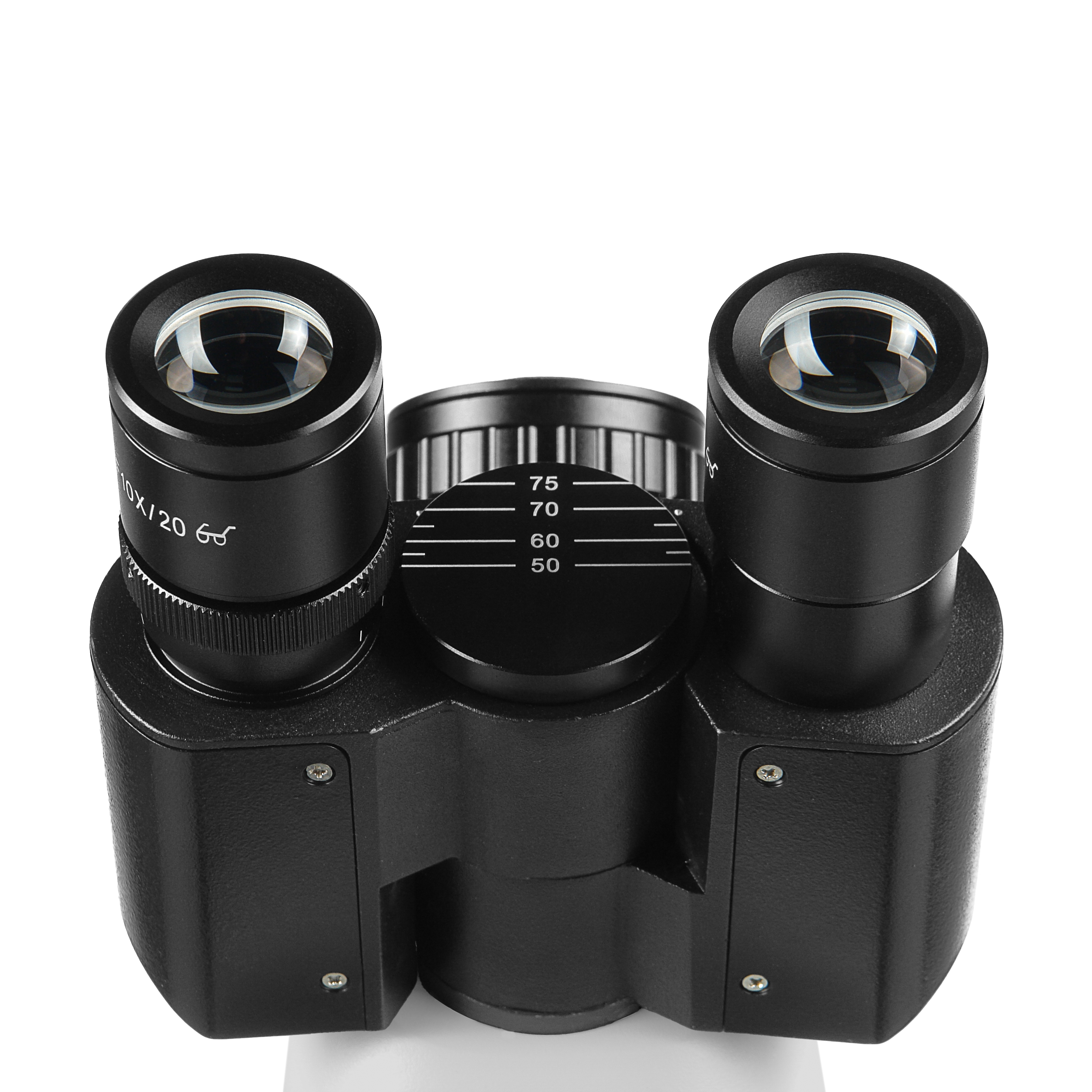 Микроскоп комплектуется окулярами широкого поля WF 10х/20 с вынесенным на 20 мм выходным зрачком, что позволяет комфортно проводить исследования как в очках, так и без них. По дополнительному заказу доступны окуляры WF 16х/13 и WF 10/20 с измерительной шкалой или сеткой. Визуальная насадка микроскопа имеет эргономичный угол наклона тубусов 30 градусов, позволяющий максимально снизить нагрузку на шейный отдел позвоночника исследователя и сделать работу на микроскопе комфортной и эффективной.