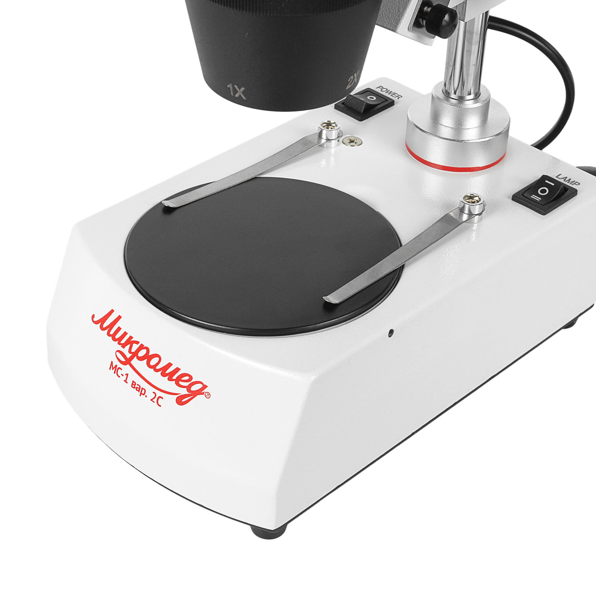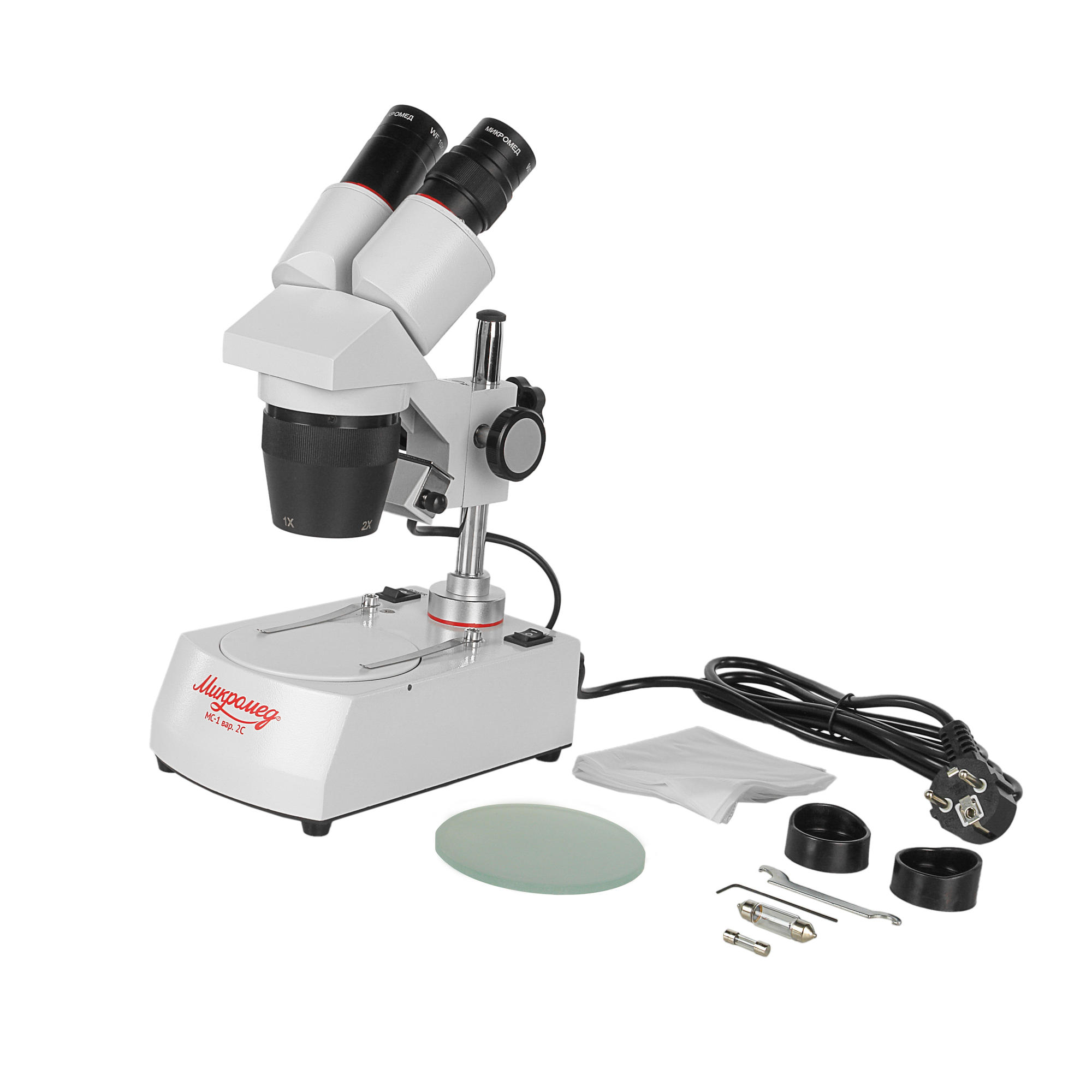 Микроскоп стерео МС-1 вар.2C (1х/2х) предназначен для наблюдения, как объемных объектов, так и тонких пленочных и прозрачных объектов, а также выполнения разнообразных тонких работ: препарирования - в биологии, изучения образцов горных пород - в минералогии, а также в других областях науки и техники. Микроскоп дает прямое и объемное изображение рассматриваемых объектов. Наблюдение может производиться как при искусственном, так и при естественном освещении в отраженном и проходящем свете. Микроскоп выпускается в различных вариантах исполнения, отличающихся конструктивным оформлением основания, объектива, а также вариантами комплектации принадлежностями, которые приведены в таблице.