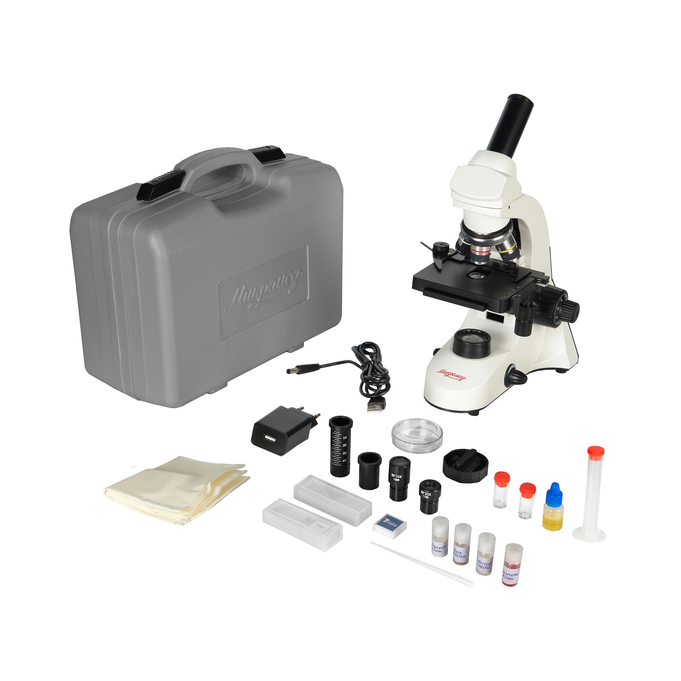 Микроскоп применяется для учебного процесса и проведения лабораторных работ по биологии, экологии, физике и химии в учебных кабинетах школ и лицеев. Также микроскоп может быть использован для самостоятельных занятий в домашних условиях.