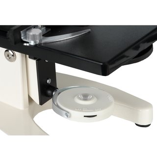 При работе с микроскопом возможно повышать контраст наблюдаемых изображений. Для этого предназначен поворотный диск с 5-ю отверстиями, выполняющих функцию апертурных диафрагм. С их помощью можно настроить осветитель в соответствии с апертурой используемого объектива – чем больше апертура, тем большего диаметра рекомендуется устанавливать отверстие. При использовании правильного размера отверстия обеспечивается оптимальное соотношение разрешающей способности и контраста изображения.