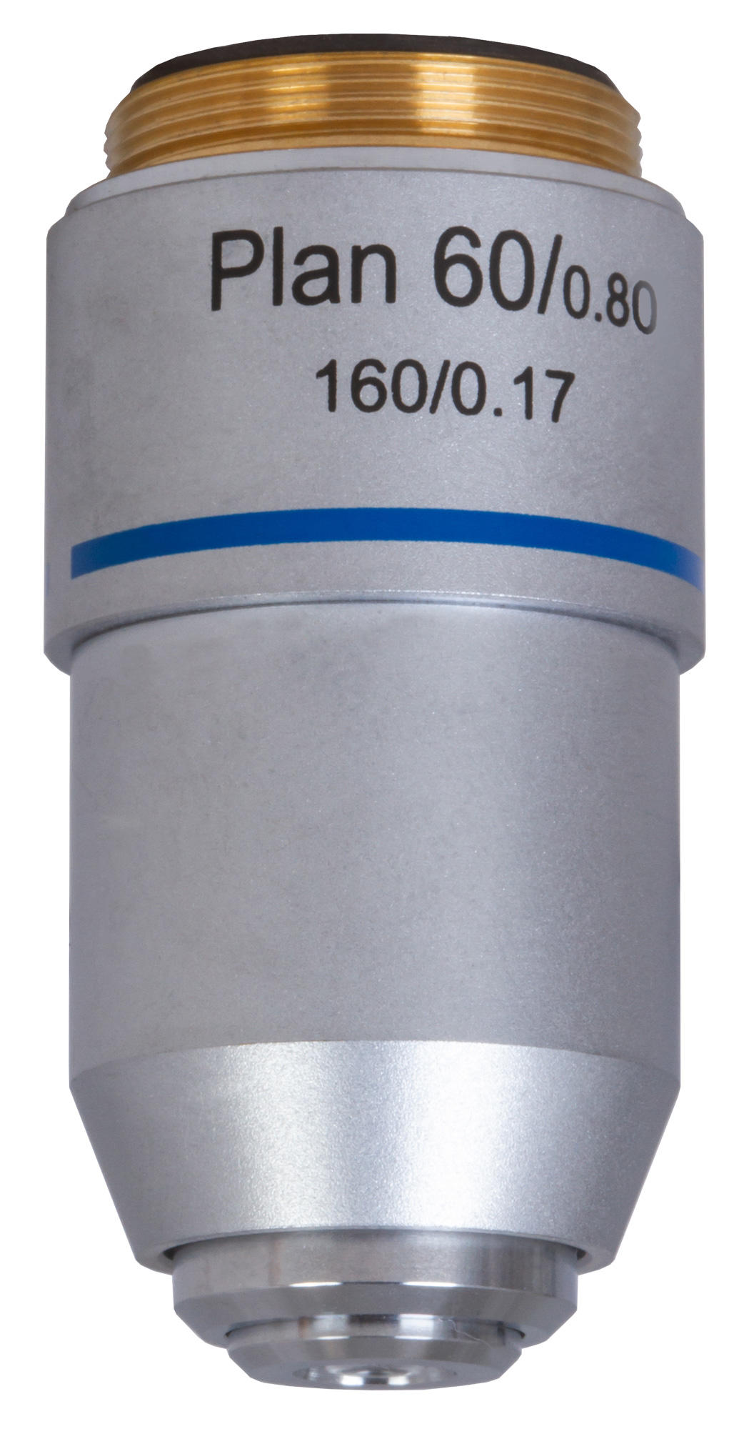 Levenhuk MED 60x – 60-кратный планахроматический объектив, возможности которого оценят профессиональные исследователи. Основная особенность этого аксессуара – оптика, передающая высококачественное изображение без сферических искажений. Планахроматическая схема эффективно убирает аберрации и выравнивает поле зрения. Также оптика улучшает цветопередачу и делает передаваемую картинку более контрастной.