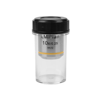 Объектив LM PLAN 10x/0.25 беск/0 (DIN) имеет посадочный диаметр 20,1 мм и подходит для металлографических микроскопов, поддерживающих стандарт DIN, имеющих парфокальную высоту 45 мм и длину тубуса «бесконечность». Предназначен для работы с образцами без покровного стекла.