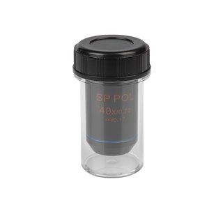 Объектив SP POL 40х/0.70 беск/0.17 (DIN) имеет посадочный диаметр 20,1 мм и предназначен для поляризационных микроскопов, поддерживающих установочный стандарт DIN. Рассчитан на длину тубуса «бесконечность». Подходит для исследования образцов с покровным стеклом толщиной 0,17 мм.
