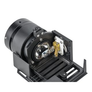 Опак-иллюминатор направляет свет, отраженный от объекта, в окулярные тубусы, и одновременно свет источника от конденсора через объектив микроскопа направляется на объект исследования. Свет в подобной системе падает на предмет точно в вертикальном направлении, что имеет важное значение в металлографии. В осветителе имеется слот для комплектных светофильтров - желтого, зеленого и синего.
