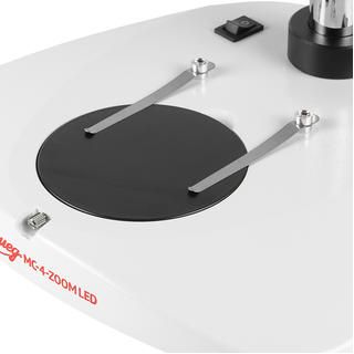 Освещение препаратов может выполнятся как естественным, так и искусственным освещением: микроскоп оснащен встроенными светодиодными осветителями отраженного и проходящего света с плавной регулировкой яркости.