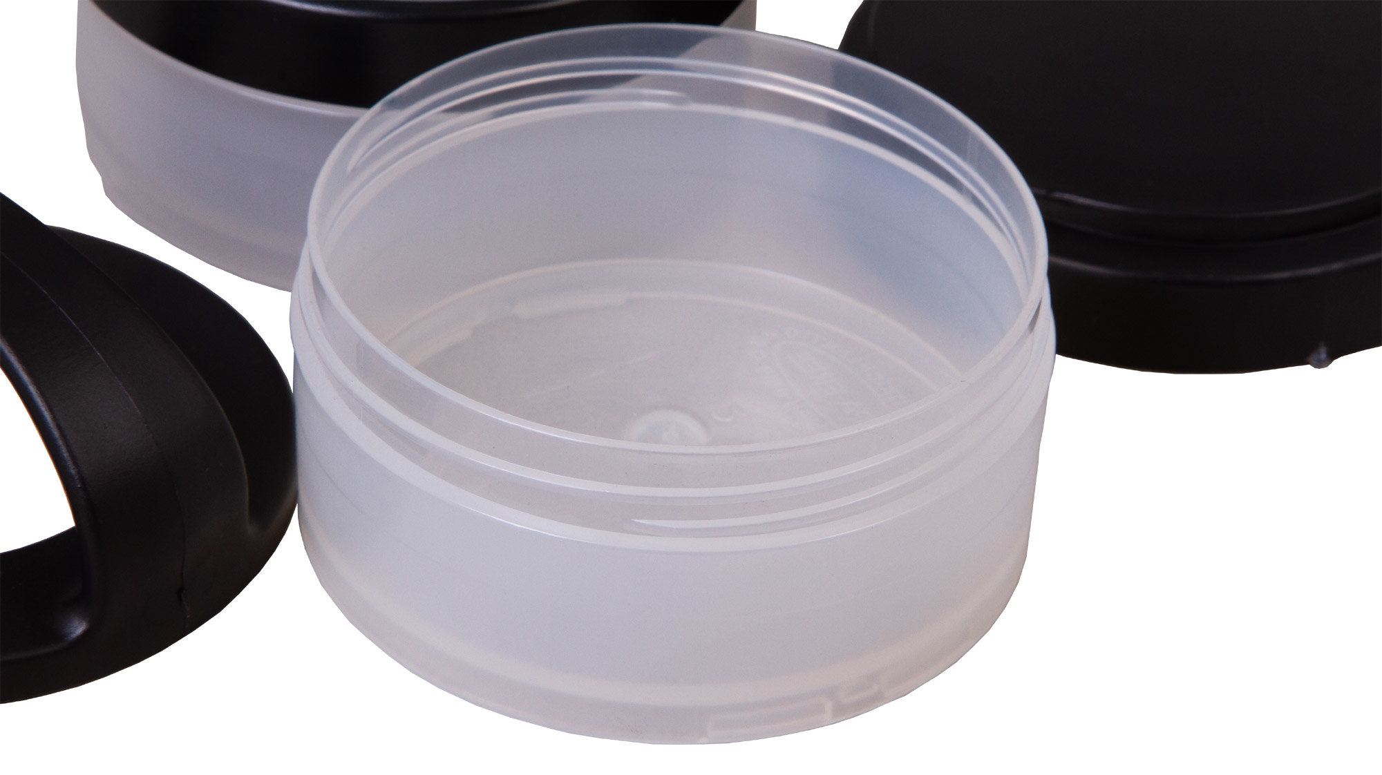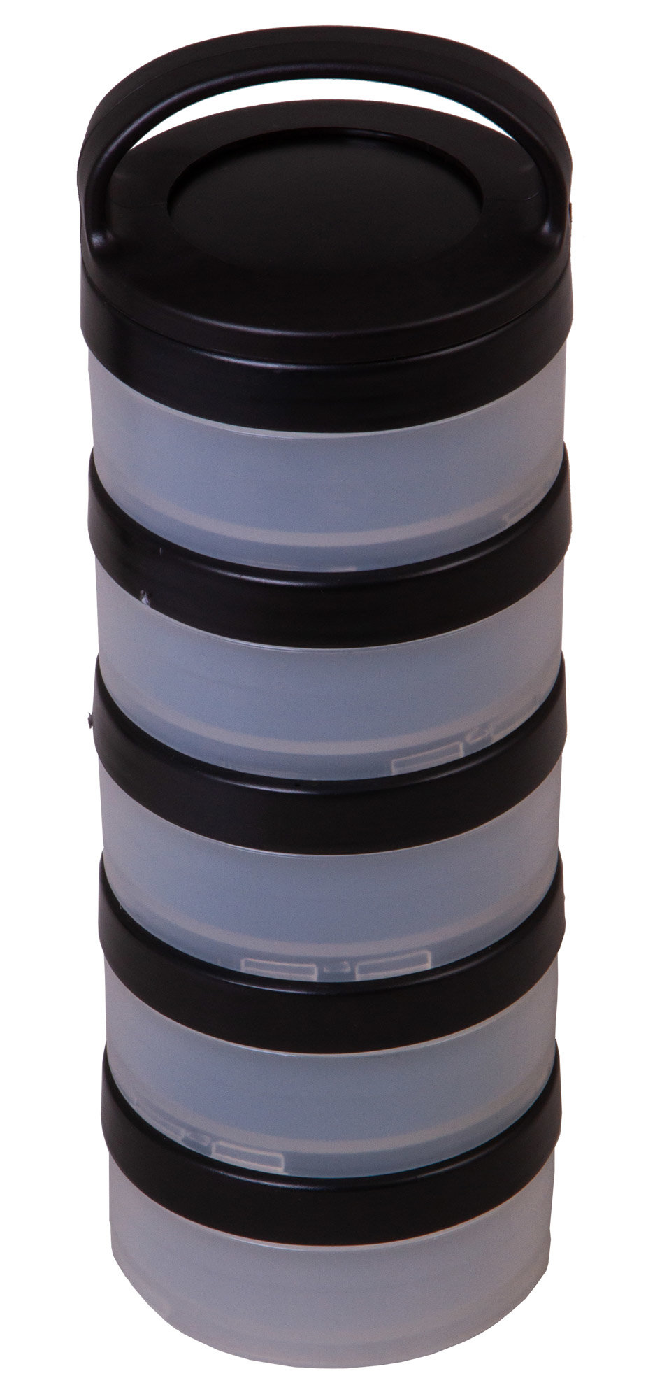 Набор из пяти пластиковых контейнеров Bresser пригодится для хранения аксессуаров для микроскопов: окуляров, объективов, цифровых камер и многого другого. В контейнерах также можно хранить биологические образцы для будущих исследований, минералы, шлифы металлов – все, что только может заинтересовать микробиолога.