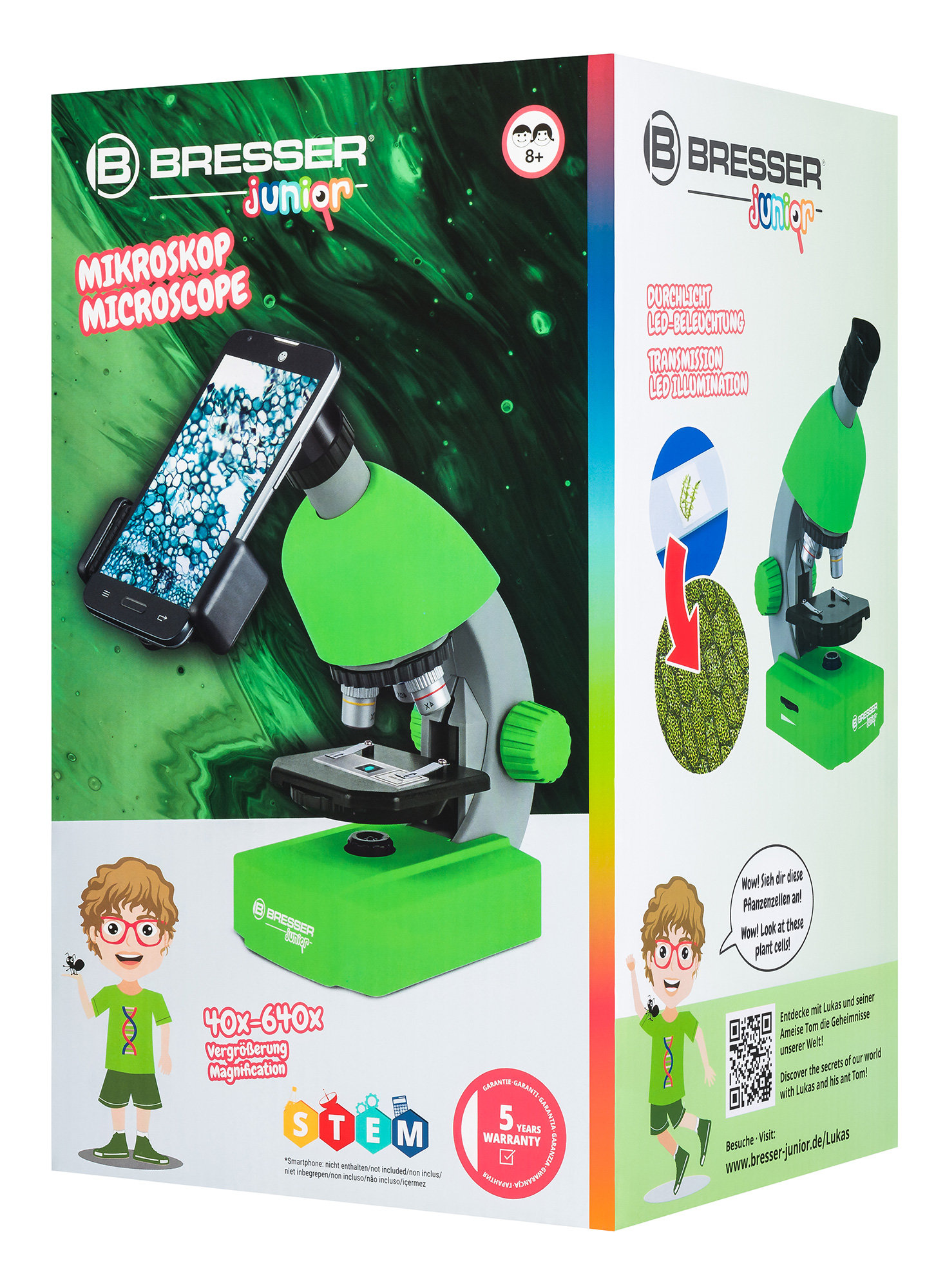 Микроскоп Bresser Junior 40x-640x – модель для самых юных исследователей в возрасте от 6 лет. Микромир не менее интересен, чем космос, а микроскоп поможет в его изучении. В комплект поставки входит множество полезных аксессуаров – есть и готовые микропрепараты, и набор инструментов для их самостоятельного изготовления, и даже флаконы с дрожжами и яйцами рачка артемии.