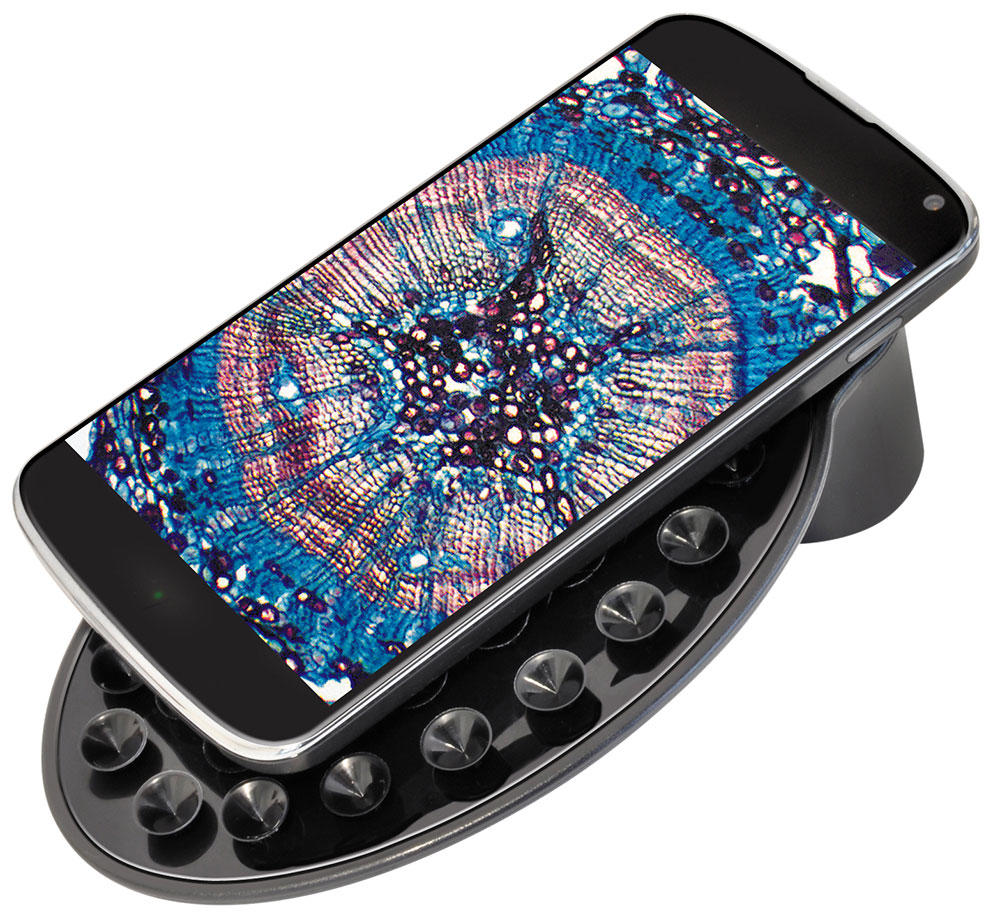 Небольшой наклон монокулярной насадки делает длительные наблюдения максимально удобными. Широкопольные окуляры позволяют изучать протяженные образцы, а с помощью трехгнездного револьверного устройства удобно менять увеличение прямо во время наблюдений. Линза Барлоу позволяет увеличивать кратность микроскопа в два раза. Образцы фиксируются на предметном столике при помощи зажимов. Освещать их можно снизу или сверху – в микроскопе установлена комбинированная светодиодная подсветка. Ее яркость можно регулировать. Есть диск с диафрагмами.