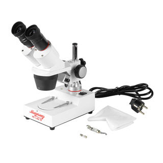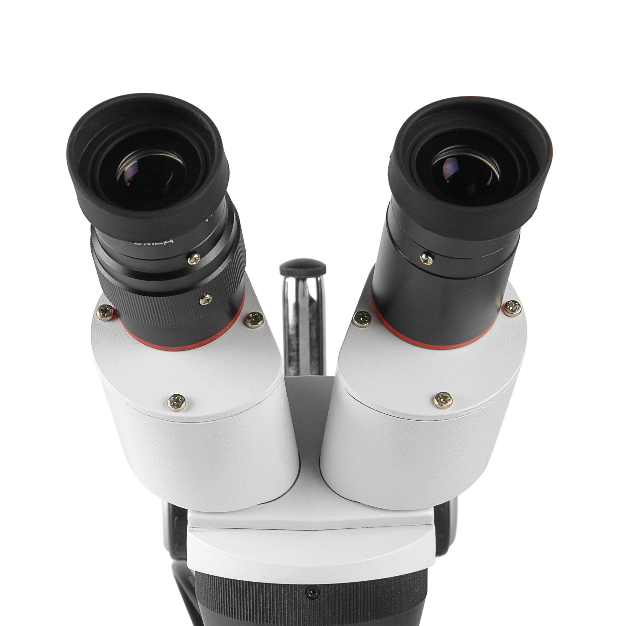 Рабочее расстояние микроскопа составляет 57 мм, увеличение - от 10 до 40 крат. Возможно использование видеоокуляра (приобретается отдельно), который устанавливается в тубус микроскопа вместо окуляра при помощи переходника 23,2 мм - 30,5 мм и позволяет выводить изображение в режиме реального времени на экран ПК. Для удобства использования предусмотрена диоптрийная настройка на левом тубусе и регулируемое межзрачковое расстояние в диапазоне от 55 до 75 мм.