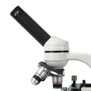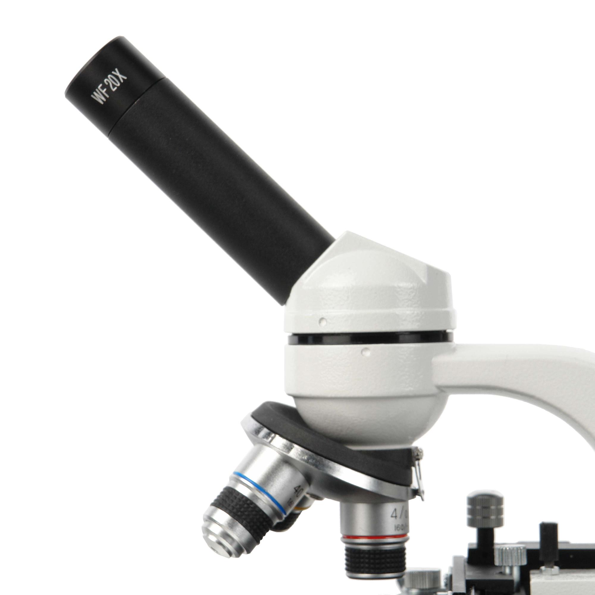 Монокулярная визуальная насадка микроскопа Микромед С-11(вар. 1М LED) имеет поворотную конструкцию, это позволяет наблюдателю выбирать наиболее комфортное положение при исследовании и делает учебный процесс более удобным, особенно в ситуациях, когда наблюдение проводят несколько учащихся одновременно. Окулярный тубус насадки может быть использован для установки цифровой окулярной камеры – видеоокуляра для вывода изображения на внешнее устройство и записи файлов. Камера устанавливается напрямую в окулярный тубус и дополнительные переходники для этого не требуются - тубус имеет посадочное место широко распространенного установочного стандарта Ø23,2 мм. Этот позволяет применять множество различных типов камер. Окулярная камера в базовый комплект поставки микроскопа не входит. Необходимую камеру всегда можно выбрать и приобрести как в нашем интернет-магазине или салонах Вебер, так и у наших дилеров. В комплект поставки микроскопа входят окуляры широкого поля WF10х/15 и 20х/11. При использовании окуляра 20х и объектива 40х достигается максимальное увеличение микроскопа 800х. С микроскопом могут быть использованы приобретаемые различные дополнительно окуляры с посадочным диаметром 23,2 мм, например, окуляр 5х/18 или окуляр 10x/18 с сеткой.