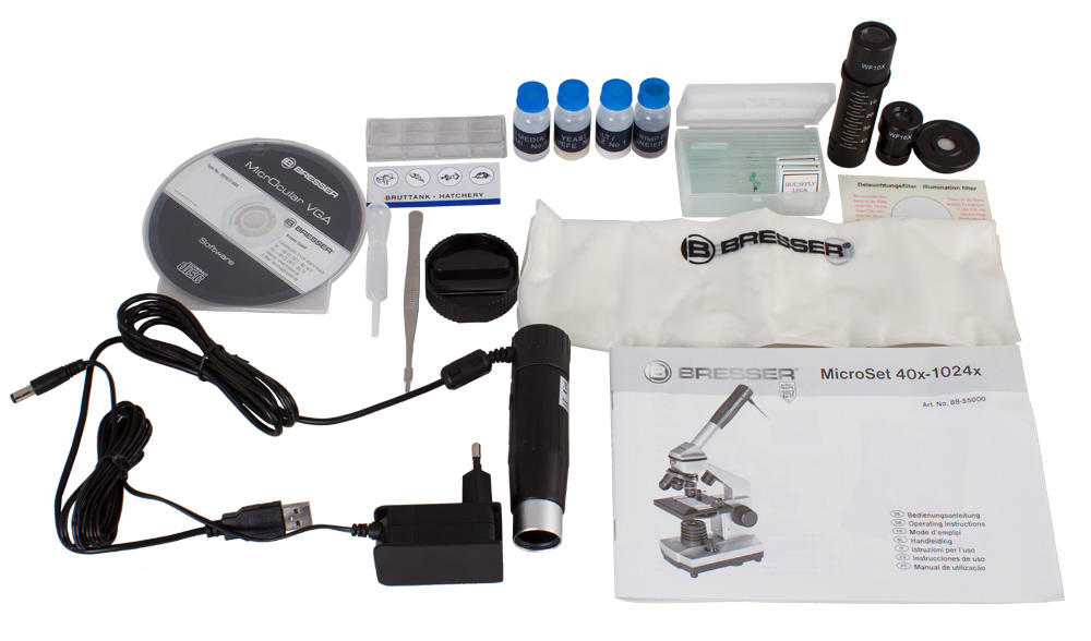 Все линзы, входящие в состав окуляров и объективов микроскопа, изготовлены из качественного оптического стекла и имеют многослойное просветляющее покрытие. Это обеспечивает максимально яркое и контрастное изображение без искажений. Микроскоп комплектуется двумя сменными окулярами для визуальных наблюдений, линзой Баролу, тремя объективами и электронным окуляром – это позволяет достичь увеличения 640х (с линзой Барлоу до 1280x) при визуальных наблюдениях и 1024х при использовании микроскопа совместно с компьютером.