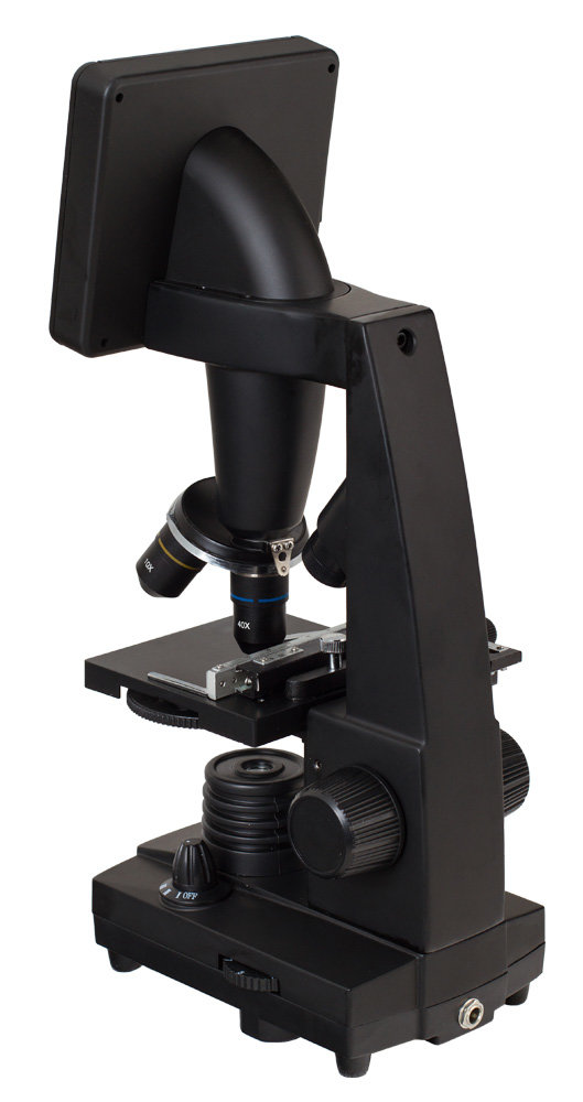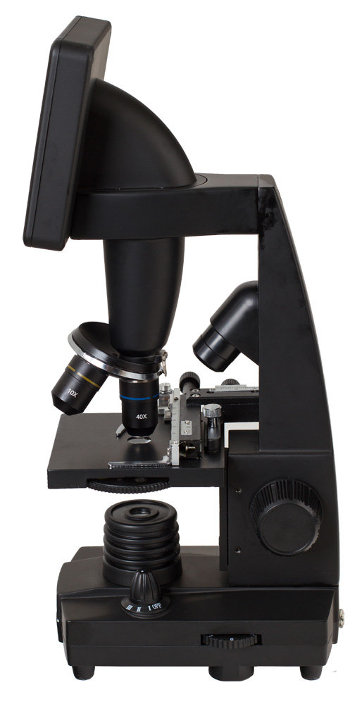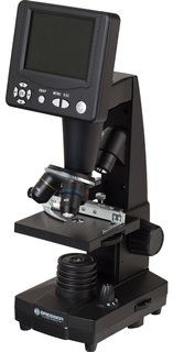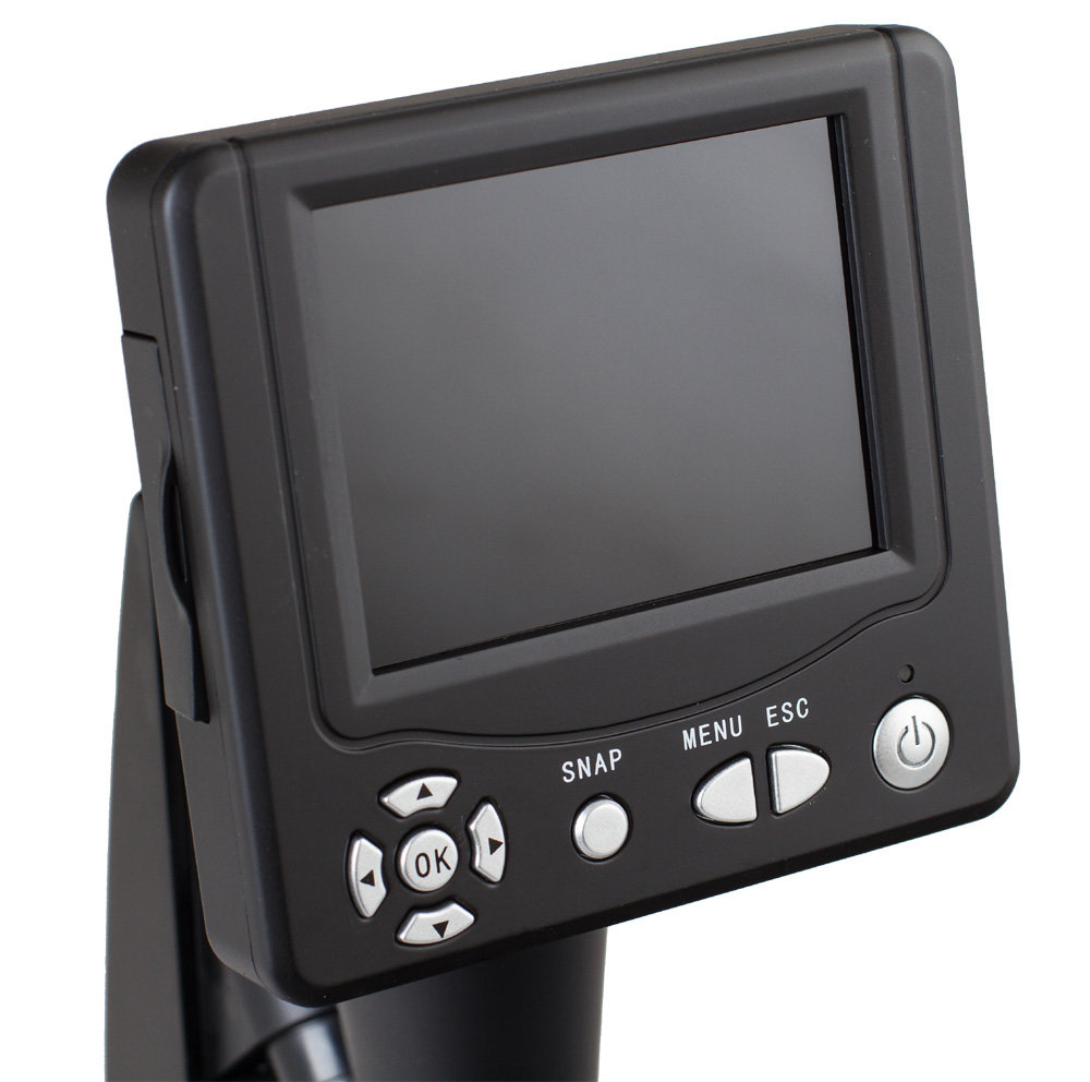 Изображение выводится на цветной ЖК-дисплей с диагональю 3,5", благодаря чему микроскоп удобно использовать при групповых работах. Кроме того, увеличенное изображение микропрепарата можно сохранить в формате JPEG. Также имеется возможность записи видео в формате 3gp. На боковой стороне дисплея имеется слот для карт формата SD.