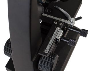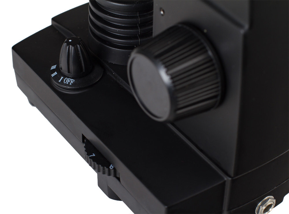 Предметный столик с нониусом и препаратоводителем позволяет перемещать изучаемый объект, не прикасаясь к нему руками. Подсветка осуществляется с помощью светодиодов. Нижняя подсветка используется для изучения прозрачных объектов, а верхняя предназначена для исследования непрозрачных объектов в отраженном свете. Под предметным столиком расположен диск с 6 светофильтрами.