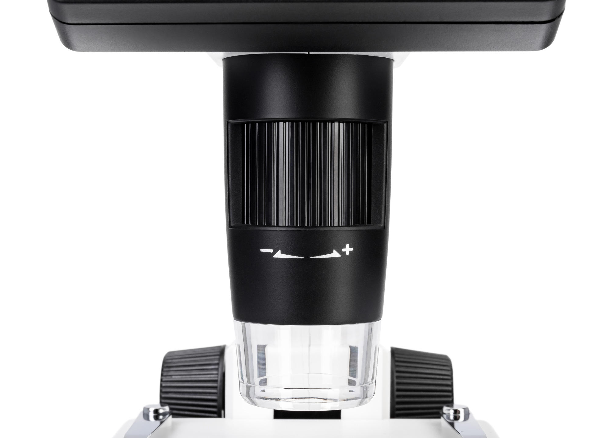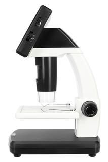 Цветной жидкокристаллический дисплей микроскопа имеет диагональ 3,5 дюйма. С помощью кнопок на корпусе можно регулировать яркость изображения, экспозицию и цветовой баланс. Микроскоп можно подключить к компьютеру с помощью стандартного кабеля USB и скопировать файлы с карты памяти. AV-выход позволяет выводить изображение из-под объектива микроскопа на телевизор или проектор в реальном времени.