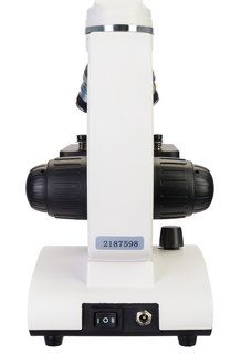Монокулярную насадку можно поворачивать вокруг оси на 360°, что упрощает работу в группе. Если необходимо показать образец другому исследователю, нет нужды перемещать весь микроскоп целиком, можно просто развернуть насадку. Также насадка имеет наиболее комфортный для длительных наблюдений наклон в 45°. Оптика микроскопа сделана из стекла и построена вокруг 10-кратного широкопольного окуляра и трех ахроматических объективов с увеличениями 4х, 10х и 40х. 40-кратный объектив подпружинен. Настраивать резкость можно грубо и точно.