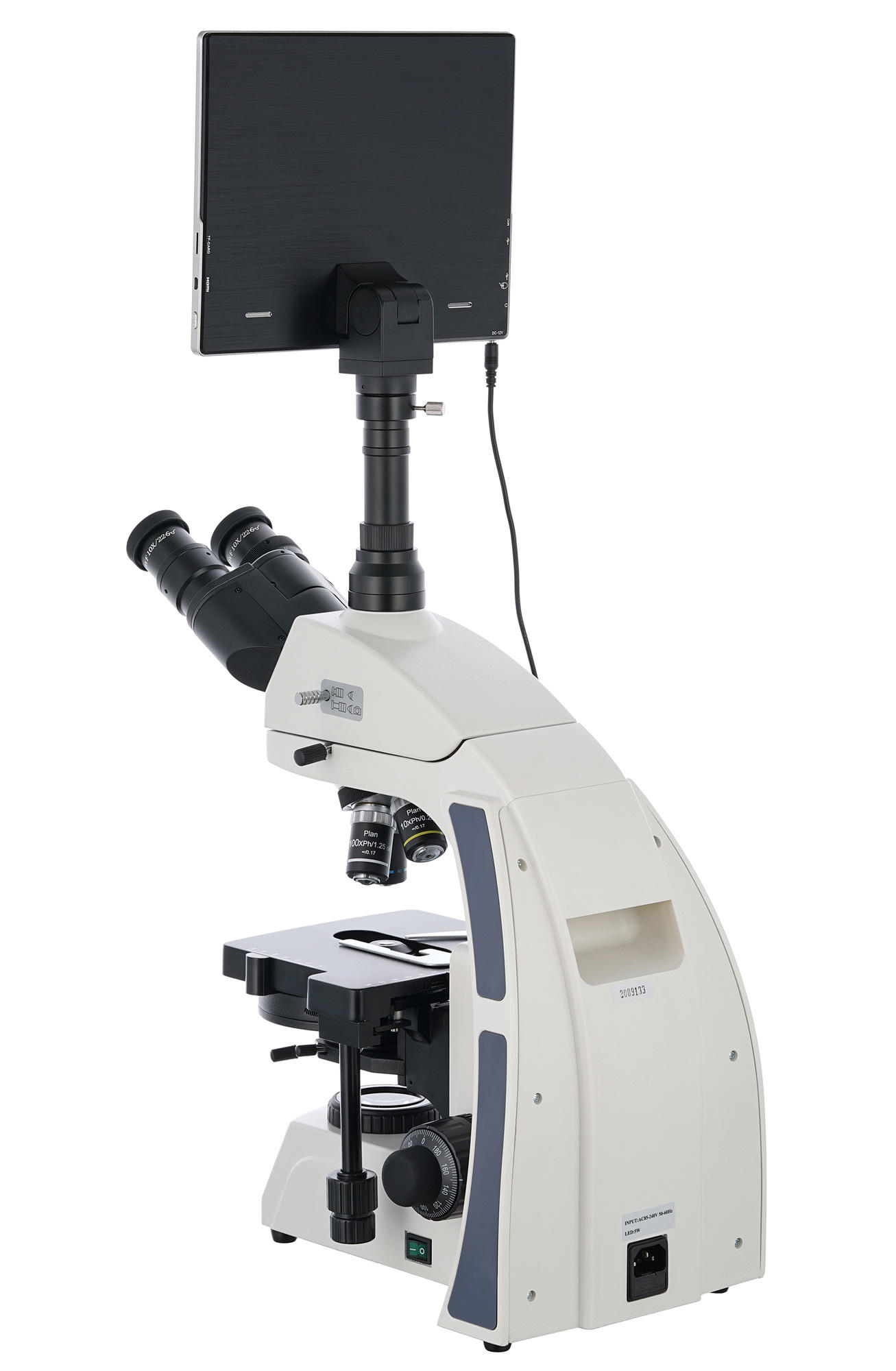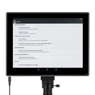 Цифровая камера делает работу в лаборатории легкой и удобной, так как позволяет вести исследования, смотря не в окуляры, а на встроенный ЖК-экран с сенсорным управлением, а это значительно снижает нагрузку на зрение. Камера позволяет снимать фото и видео и выводить картинку на встроенный или внешний экран. Она совместима с дополнительными аксессуарами: наушниками, компьютерной мышью, клавиатурой. Записывать материалы можно или во встроенную память, или на внешние накопители данных. С помощью установленного ПО можно корректировать размер, яркость, контрастность, гамму, резкость и насыщенность изображения, менять время выдержки и баланс белого, проводить калибровку камеры с объективами, измерять образцы или отдельные структуры (доступно несколько единиц измерения). Кроме того, программа позволяет проводить анализ частиц.
