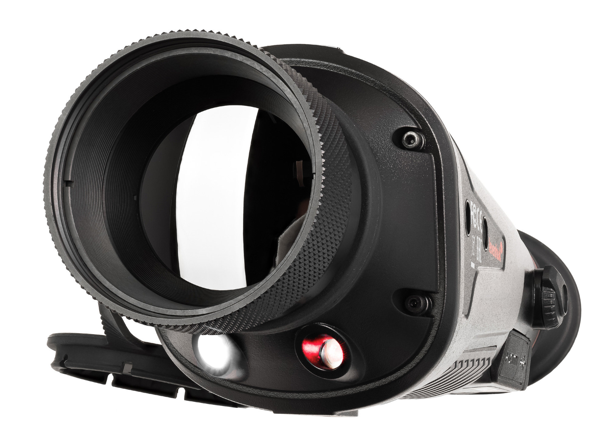 Также эта модель предоставляет расширенные возможности. Во-первых, здесь есть дальномер для проведения измерений, во-вторых, встроенный рекордер, позволяющий фиксировать наблюдения в фото и видеоформатах (для хранения отснятого материала доступно 16 ГБ памяти). Также прибор поддерживает работу по двум беспроводным протоколам – Bluetooth и Wi-Fi. Первый используется для дистанционного управления, а второй – для сопряжения со смартфонами на базе iOS и Android. Работа со смартфона возможна при установленном приложении TargetIR. Кроме того, в корпусе есть два порта для проводного подключения: microHDMI – через него видео с тепловизора можно вывести на внешний экран, Type-C – через него осуществляется зарядка прибора и передача данных.