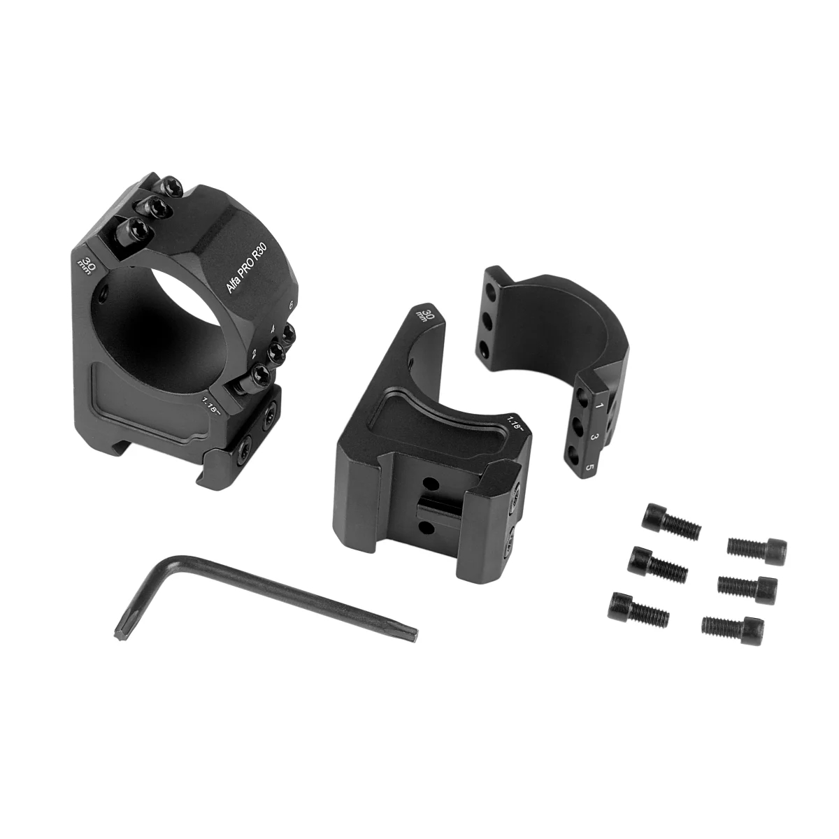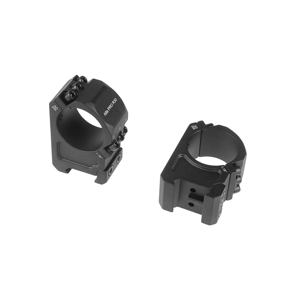 Раздельные кольца совместимы с планками Weaver, для использования на снайперских винтовках для стрелкового спорта. Каждая деталь изготовлена на станке с ЧПУ из цельного куска алюминия 7075-T651. Конструкция колец с фирменным разделением под углом 45° и шестью винтами обеспечивает необходимую стабильность системы в любых условиях, чтобы предотвратить смещение прицела, и облегчает доступ к барабанчикам механизмов поправок. Покрытие - жесткое анодирование.