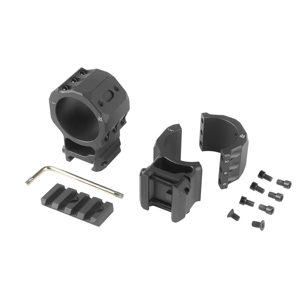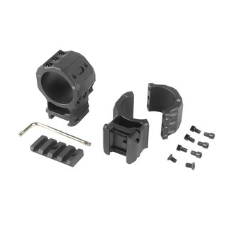 Раздельные кольца совместимы с планками Weaver, для использования на снайперских винтовках для стрелкового спорта. Конструкция колец с фирменным разделением под углом 45° и шестью винтами обеспечивает необходимую стабильность системы в любых условиях, чтобы предотвратить смещение прицела, и облегчает доступ к барабанчикам механизмов поправок. В комплекте съемная база Weaver 45мм для установки различных оптических аксессуаров на любое из колец и ключ. Каждая деталь изготовлена на станке с ЧПУ из цельного куска алюминия 7075-T651. Покрытие - жесткое анодирование.