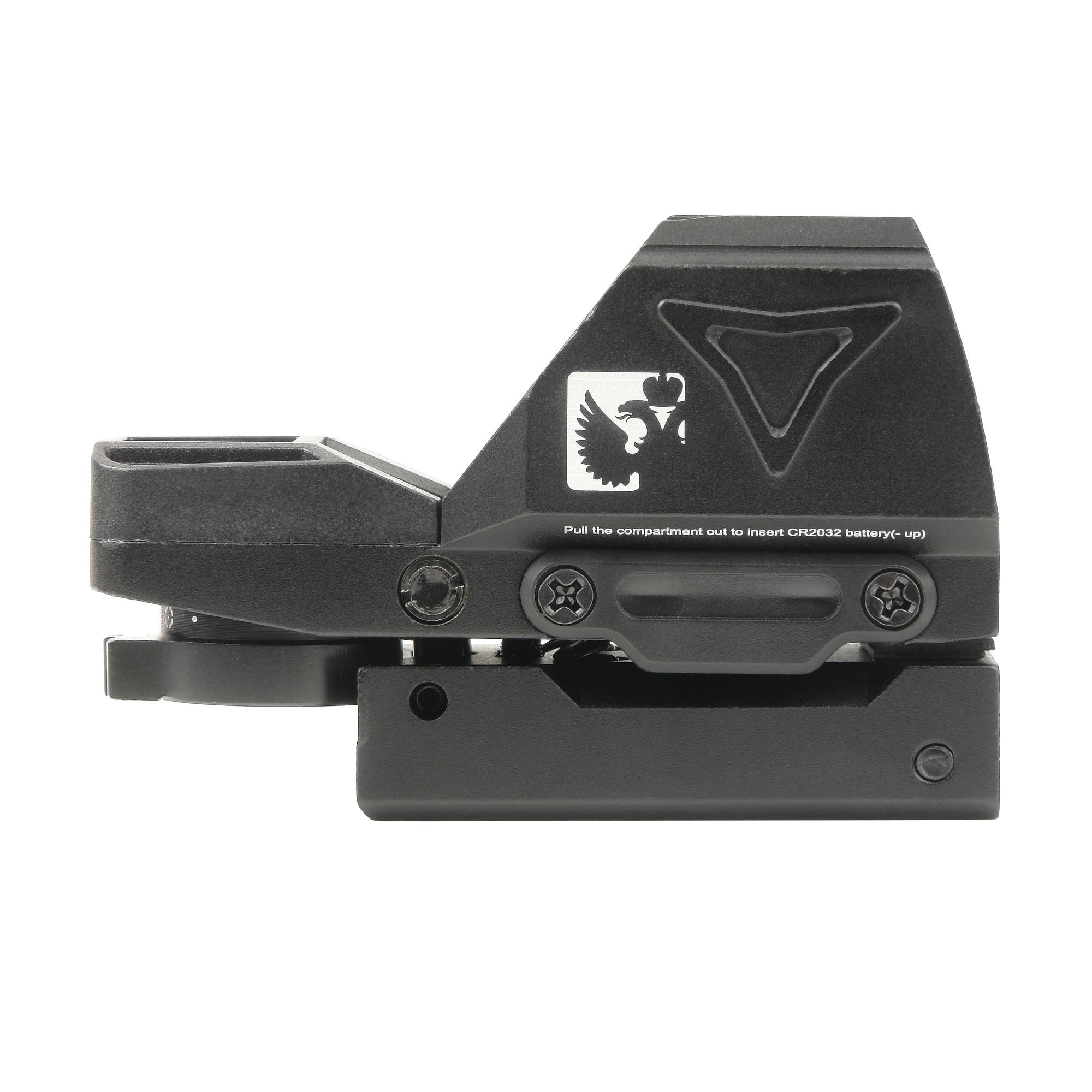 Подсветка прицела питается от батареи CR2032. Герметичный выдвижной слот для батареи находится с правой стороны прицела и закреплен двумя винтами.