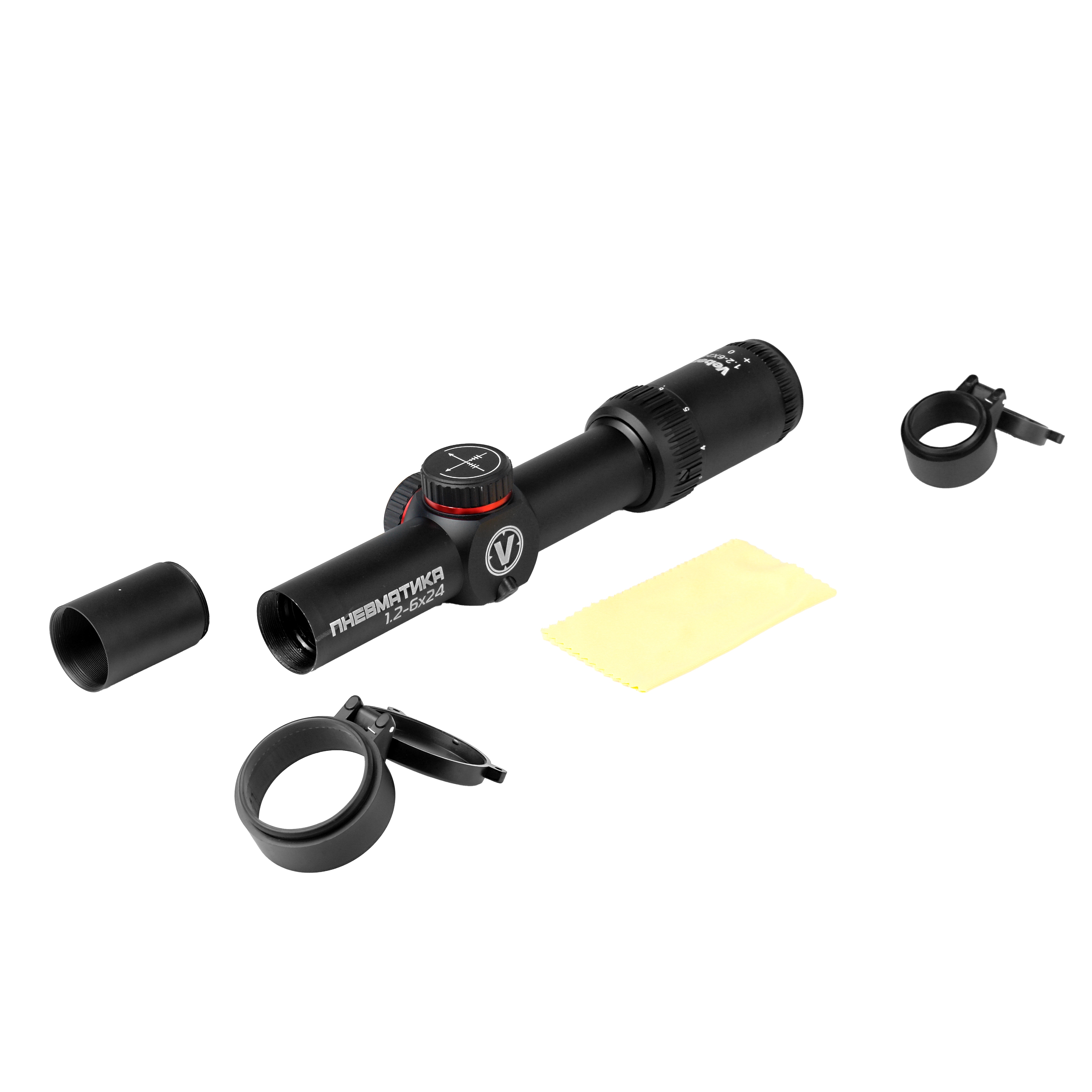 Прицел оптический Veber Пневматика 1.2-6х24 для пневматического оружия с дульной энергией до 25 Дж применяется для спортивной и развлекательной стрельбы, страйкбола и пейнтбола. Увеличение прицела от 1,2х до 6х позволяет вести эффективную стрельбу на коротких и средних дистанциях.