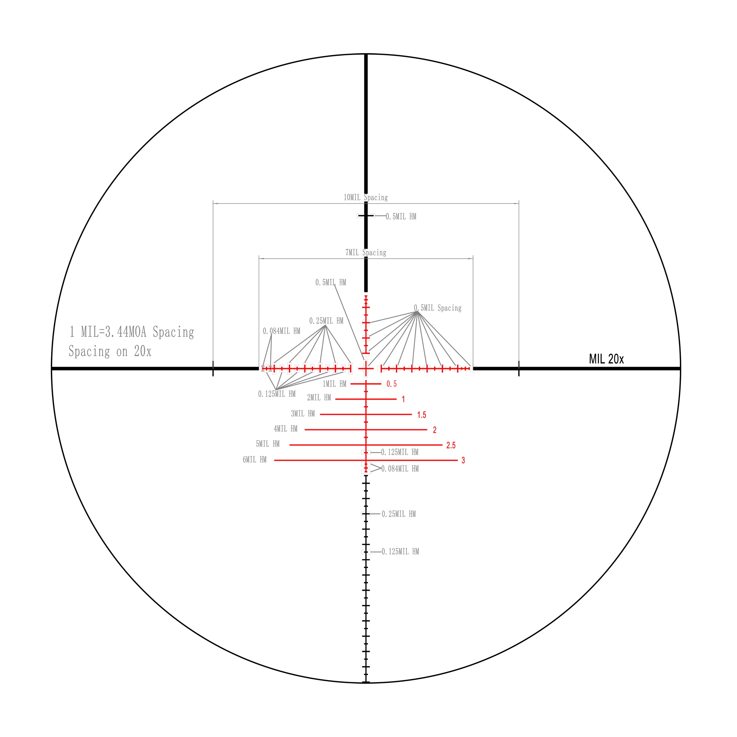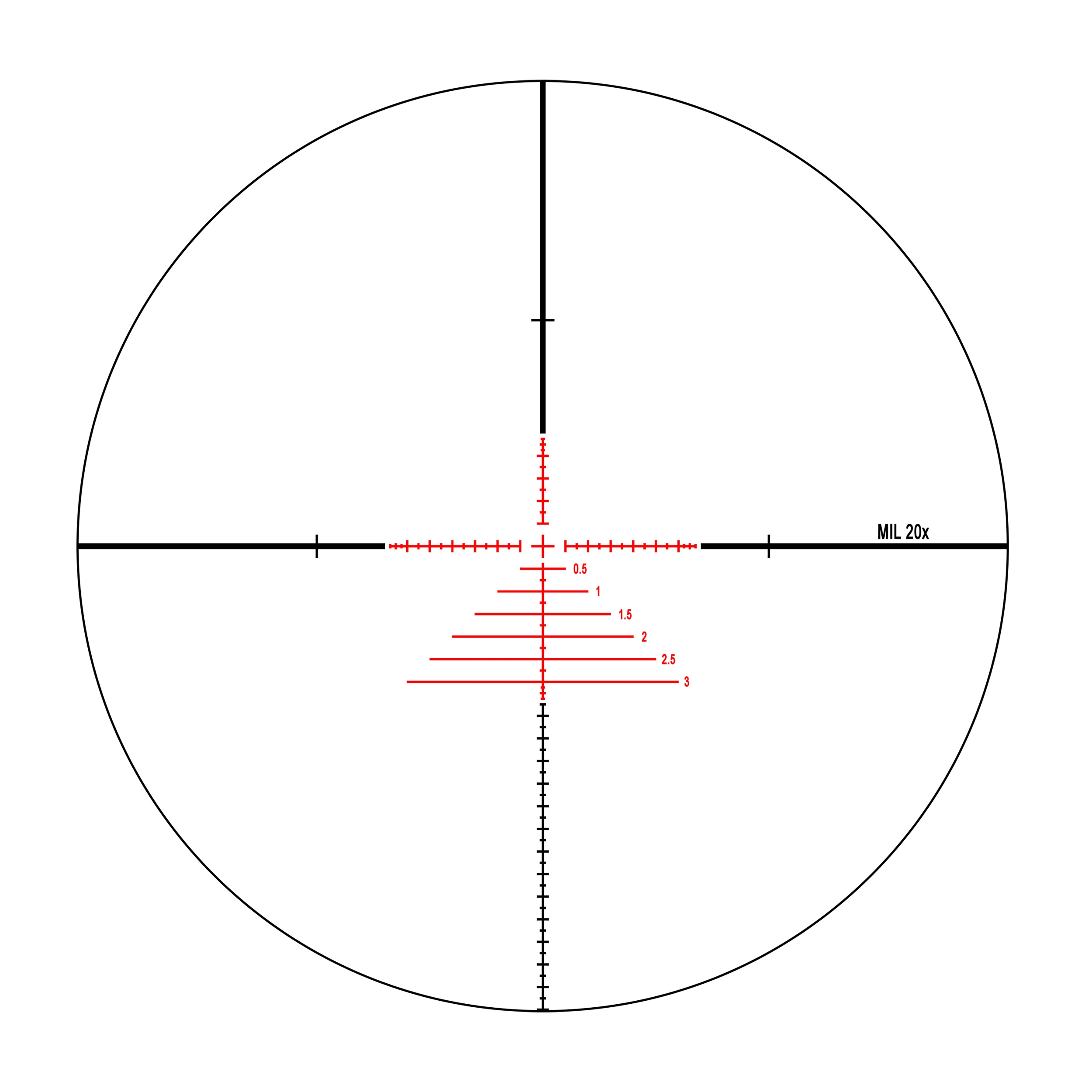 Вытравленная на стекле тактическая прицельная сетка TR1 расположена во второй фокальной плоскости прицела (SFP). Видимый размер сетки и перекрестия в поле зрения не изменяется при изменении кратности прицела. Вследствие этого измерение размеров на цели и определение поправок с помощью прицельной сетки верно при максимальной кратности прицела 20х.