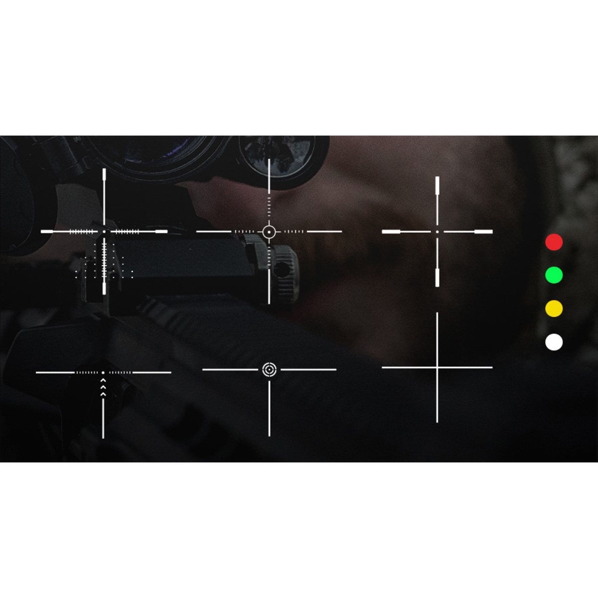 Под различные сценарии стрельбы доступно 6 стилей прицельных сеток и режим «без сетки». Цвет сетки можно выбрать из четырех вариантов: красный, белый, желтый или зеленый, для оптимального контраста с фоном. Режим «картинка в картинке» (PIP) позволяет одновременно контролировать увеличенный и стандартный вид цели.