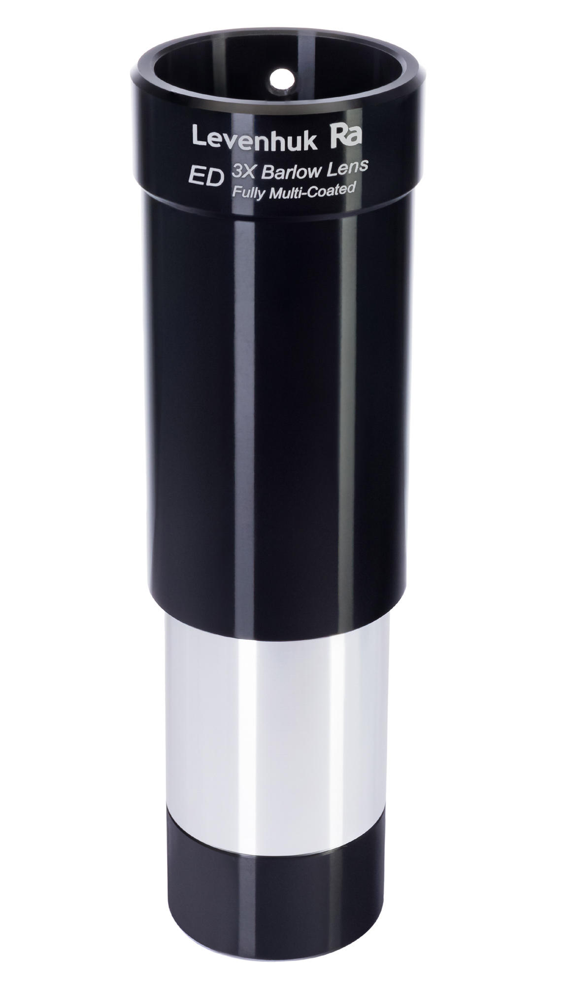 Для того, чтобы увеличить фокусное расстояние в три раза без использования дополнительных окуляров, достаточно линзы Барлоу Levenhuk 3x ED. Двухэлементная ахроматическая система оптики эффективно борется с хроматическими аберрациями, что повышает четкость картинки по всему полю зрения, а многослойное просветляющее покрытие низкодисперсионного ED-стекла делает изображение более ярким и ясно читаемым. Есть резьба под светофильтры.