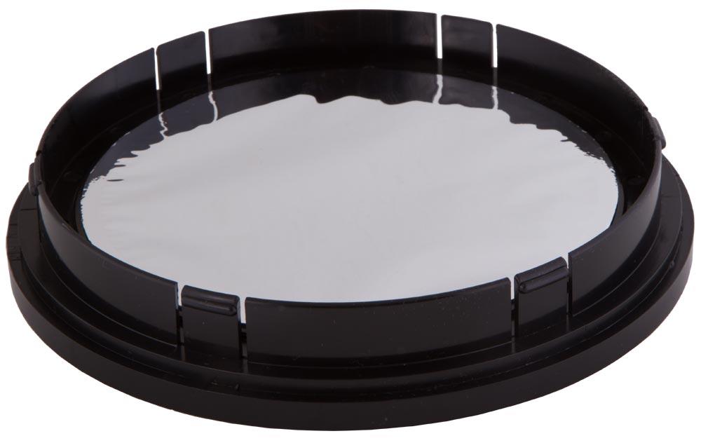 Пленка Baader Planetarium AstroSolar Visual, из которой сделан солнечный фильтр Levenhuk для рефлектора 130 обезопасит ваши наблюдения. Она отражает около 99,999% вредного излучения и заметно уменьшает яркость итогового изображения. Вы сможете наблюдать солнечный диск с максимальным комфортом. Уже на малой кратности вы сможете рассмотреть зернистую структуру в фотосфере. А на большой – изучить детали солнечных пятен и окружающих их полей. При наблюдениях через солнечный фильтр Levenhuk для рефлектора 130 Солнце будет нейтрально-белого цвета.
