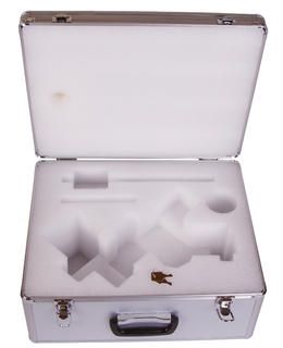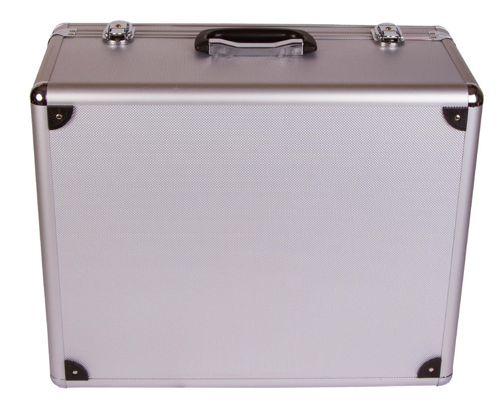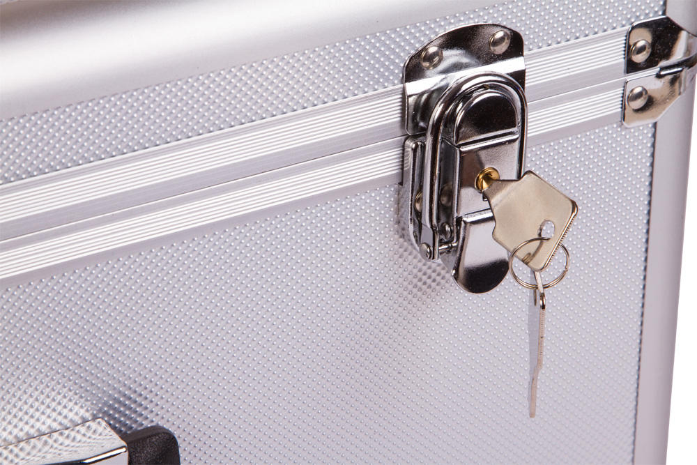 Кейс изготовлен из алюминия. Ручка обеспечивает удобную транспортировку.