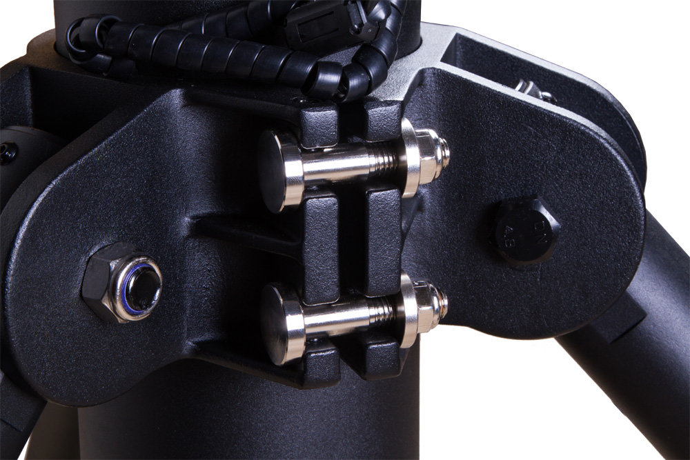 Колонна Sky-Watcher предназначена для использования с профессиональными экваториальными монтировками EQ8. Колонна изготовлена из алюминия и выдерживает нагрузку до 50 кг. Высота колонны настраивается в диапазоне от 800 до 1100 мм. Благодаря индивидуальной регулировке опор колонну можно устанавливать даже на неровную поверхность. Колонна Sky-Watcher сохранит хорошую устойчивость и не будет колебаться во время наблюдений. Для крепления монтировки используются монтажный штифт и винты креплений, расположенные в верхней части колонны.