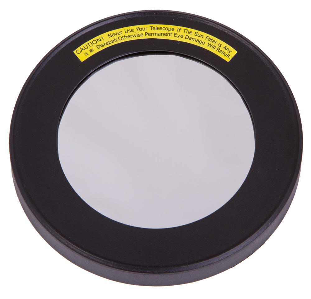 Солнечный фильтр Sky-Watcher – это необходимый аксессуар для безопасного наблюдения Солнца. Фильтр надевается на объектив и отсекает большую часть солнечного света.